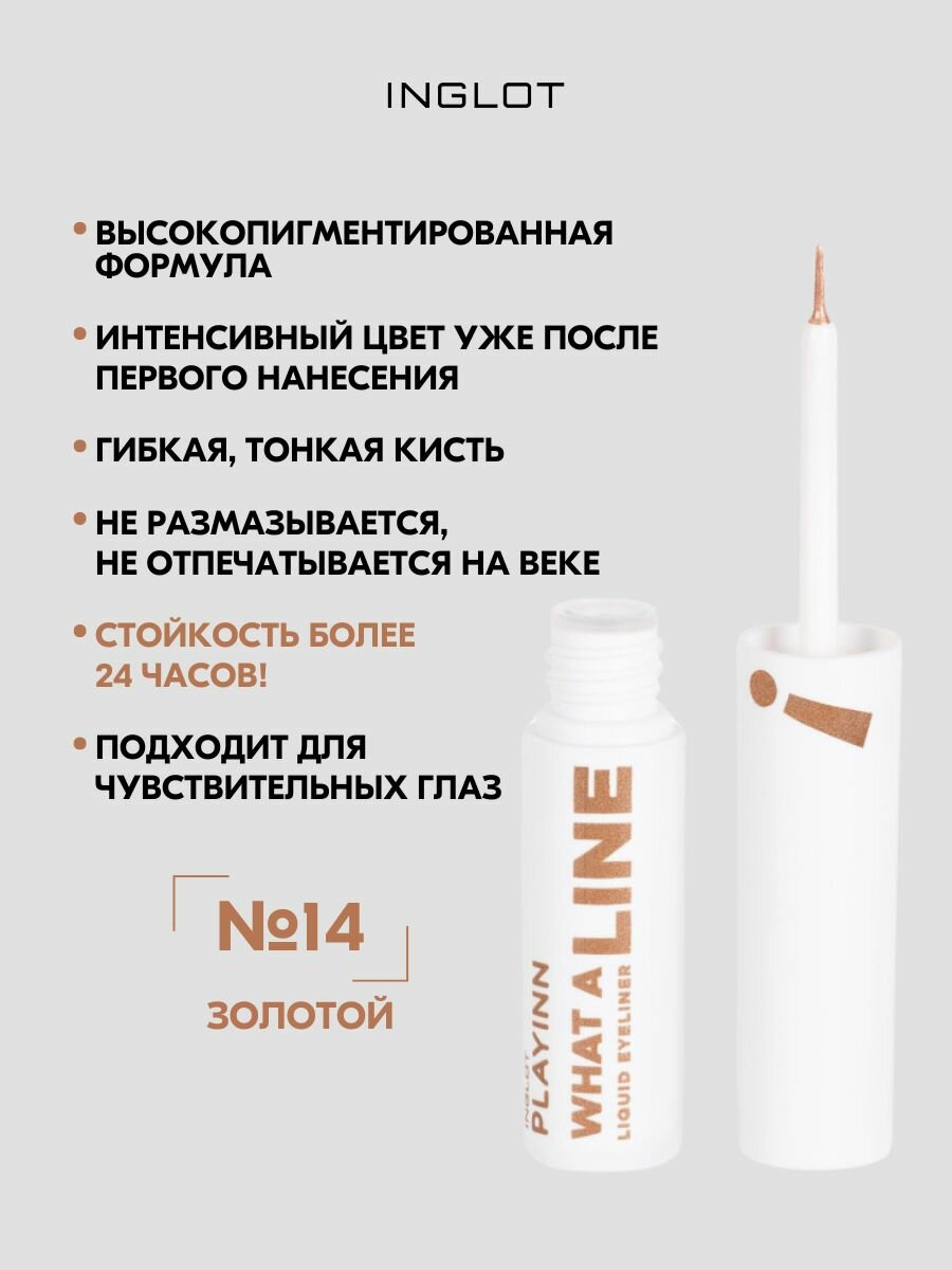 Жидкая подводка для век PLAYINN WHAT A LINE! LIQUID EYELINER №14 POWERFUL GOLD информация: