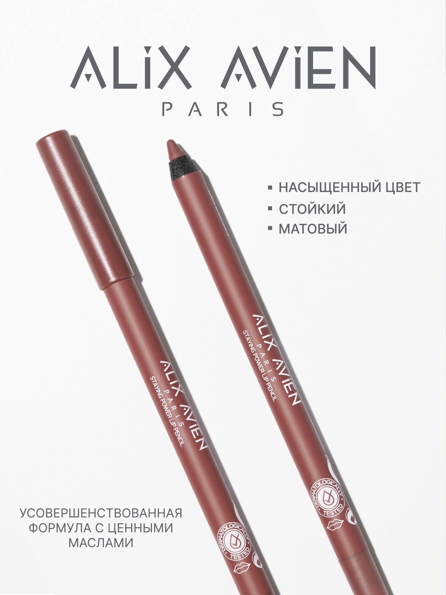 Карандаш для губ ALIX AVIEN тон № 63 темно - терракотовый, матовый, стойкий 999 ₽