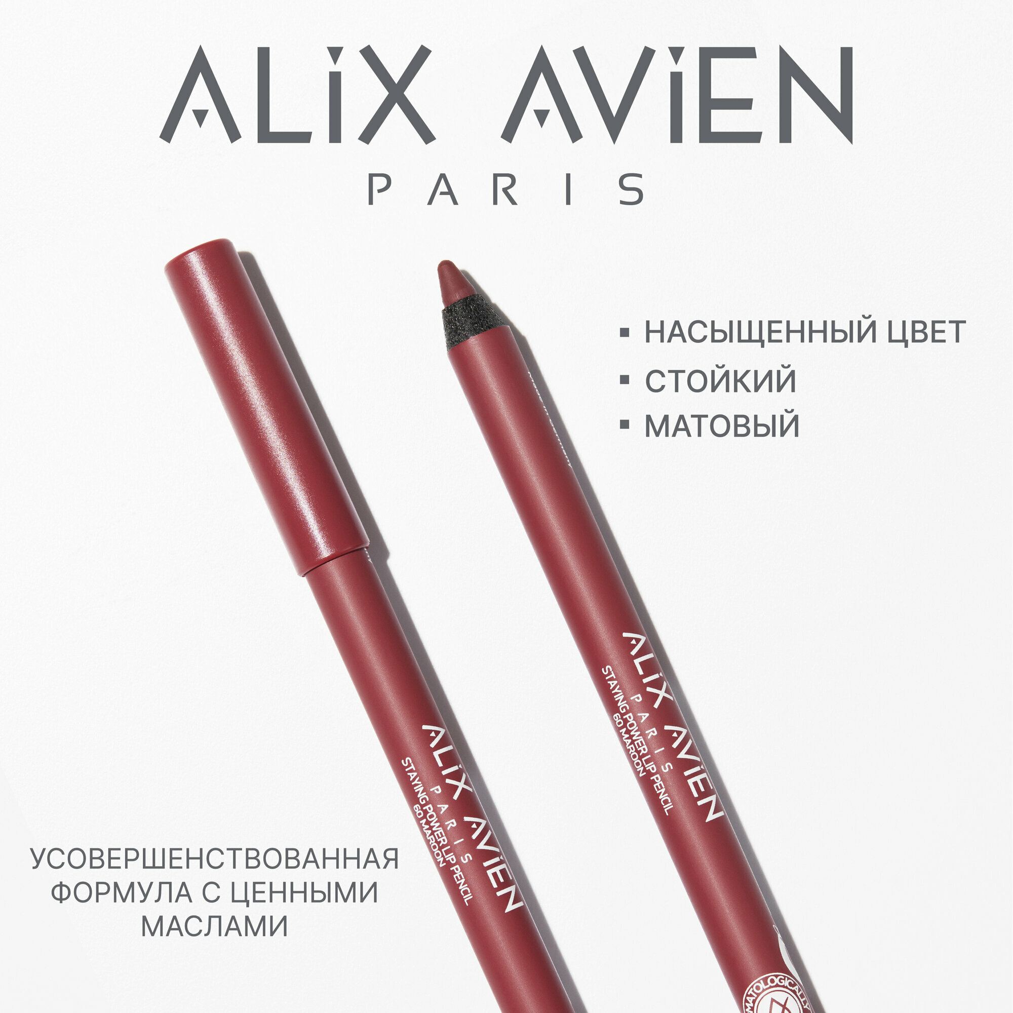Карандаш для губ ALIX AVIEN тон № 60 винный, стойкий, матовый информация: