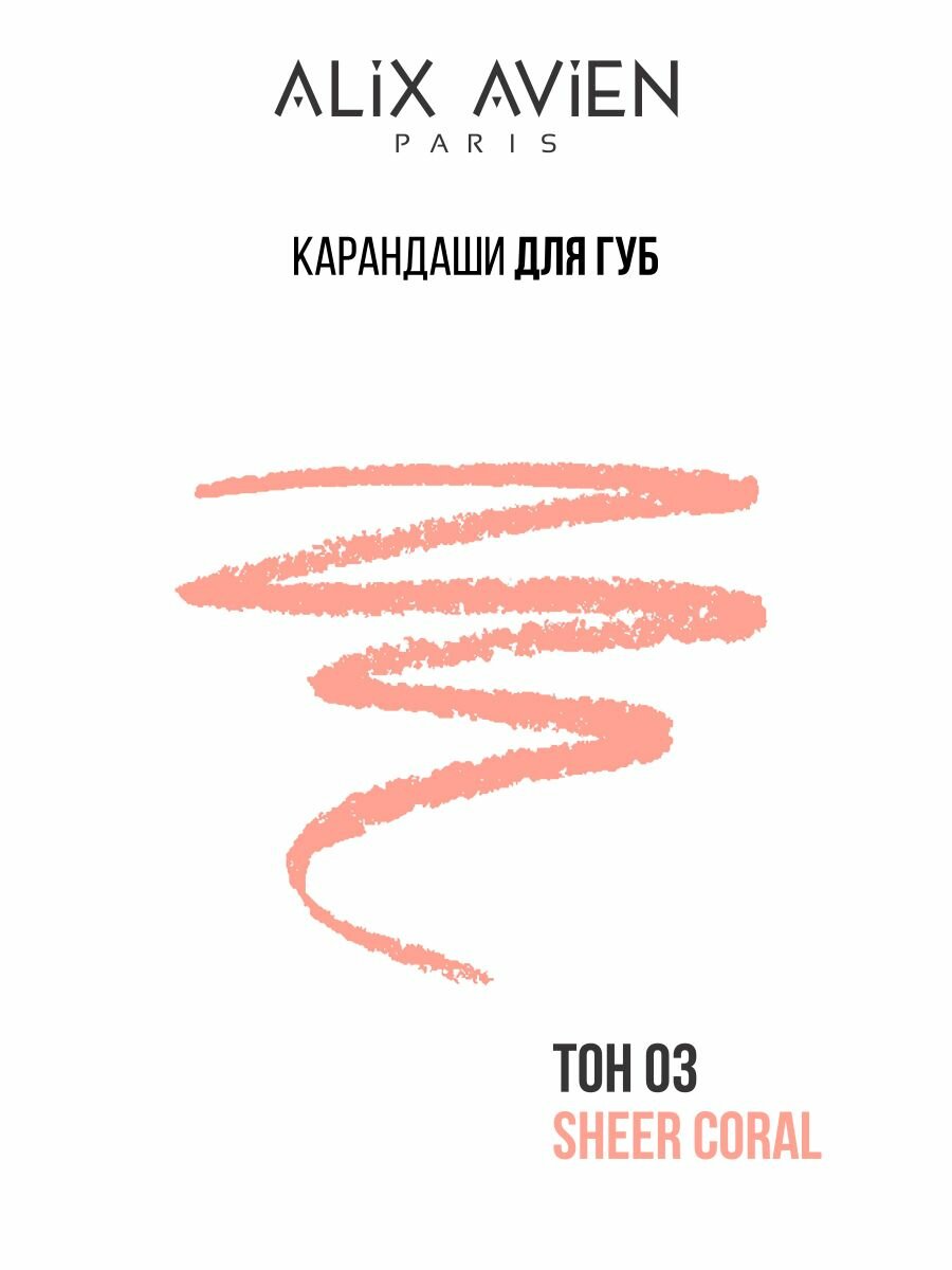 Карандаш для губ ALIX AVIEN для контуринга, оттенок 03 SHEER CORAL, стойкий, матовый информация: