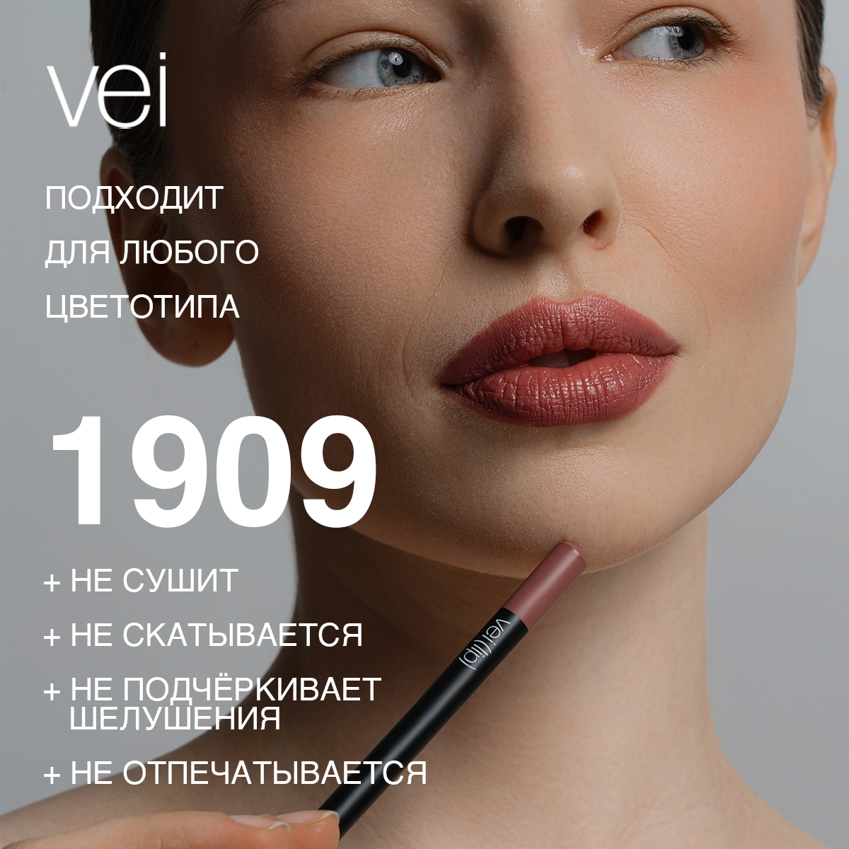 10 цен на Vei Карандаш для губ матовый холодный тёмно-пудровый розовый тон 1909 с натуральными маслами, 1,3 гр