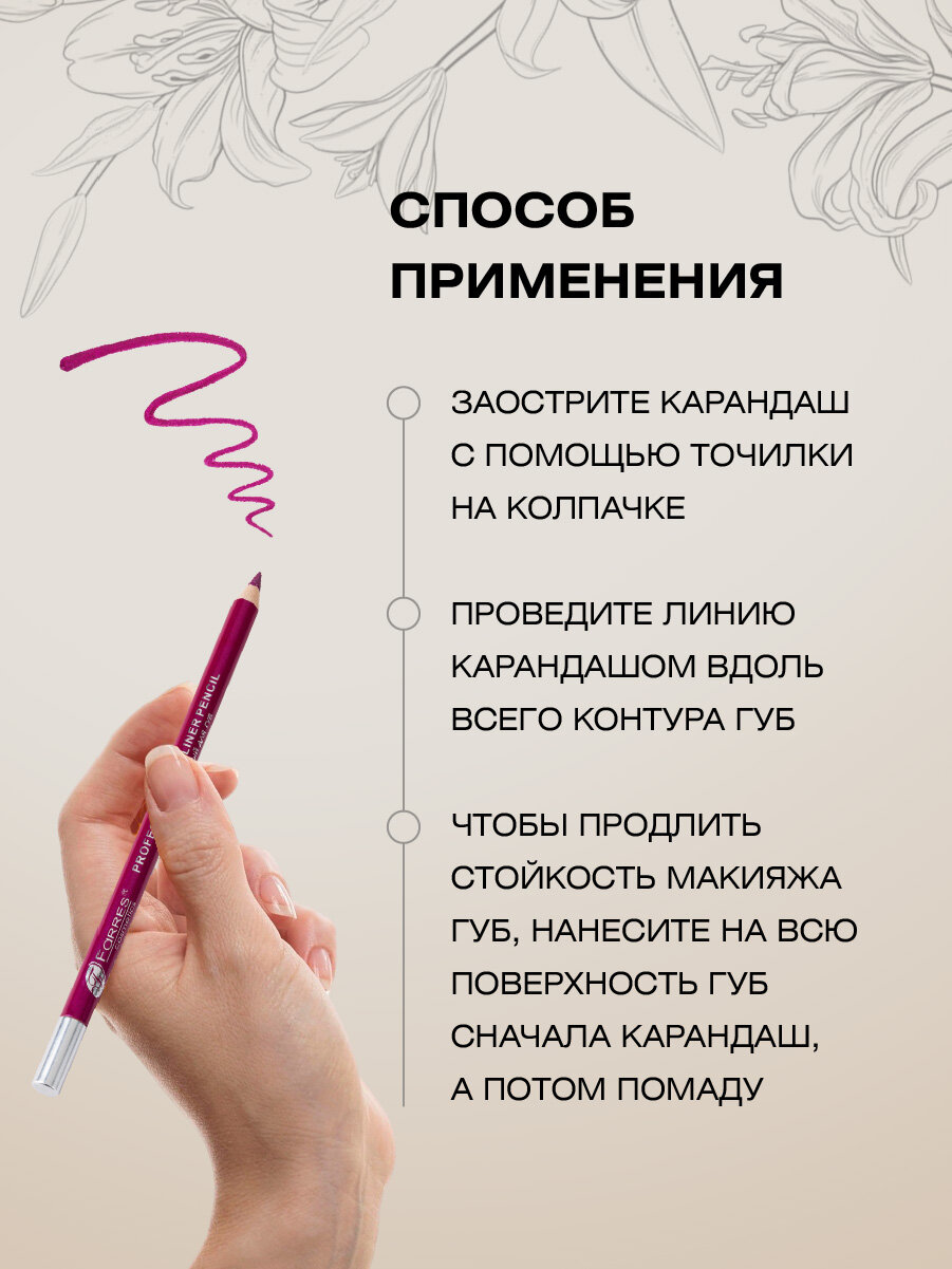 Карандаш для губ Farres с точилкой, деревянный тон 005 magenta 243 ₽