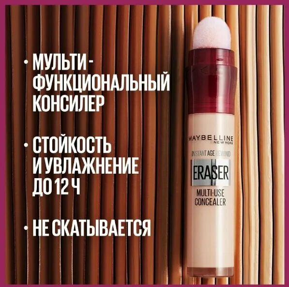 Maybelline New York Консилер для лица и глаз INSTANT ERASER, 01 Светло-бежевый, мультифункциональный, 6.8 мл информация: