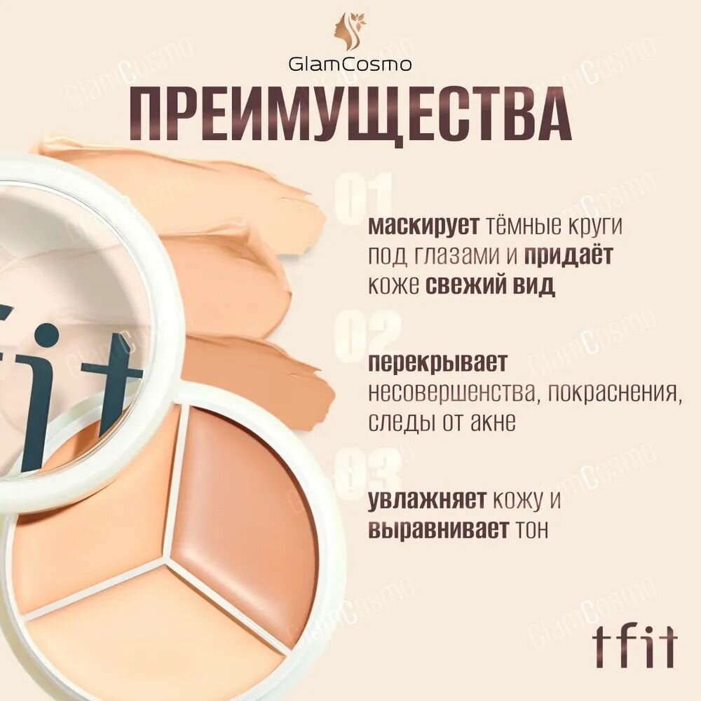 10 цен на Tfit COVER UP PRO CONCEALER 01 NEUTRAL Палетка Консилеров 3в1 Нейтральный