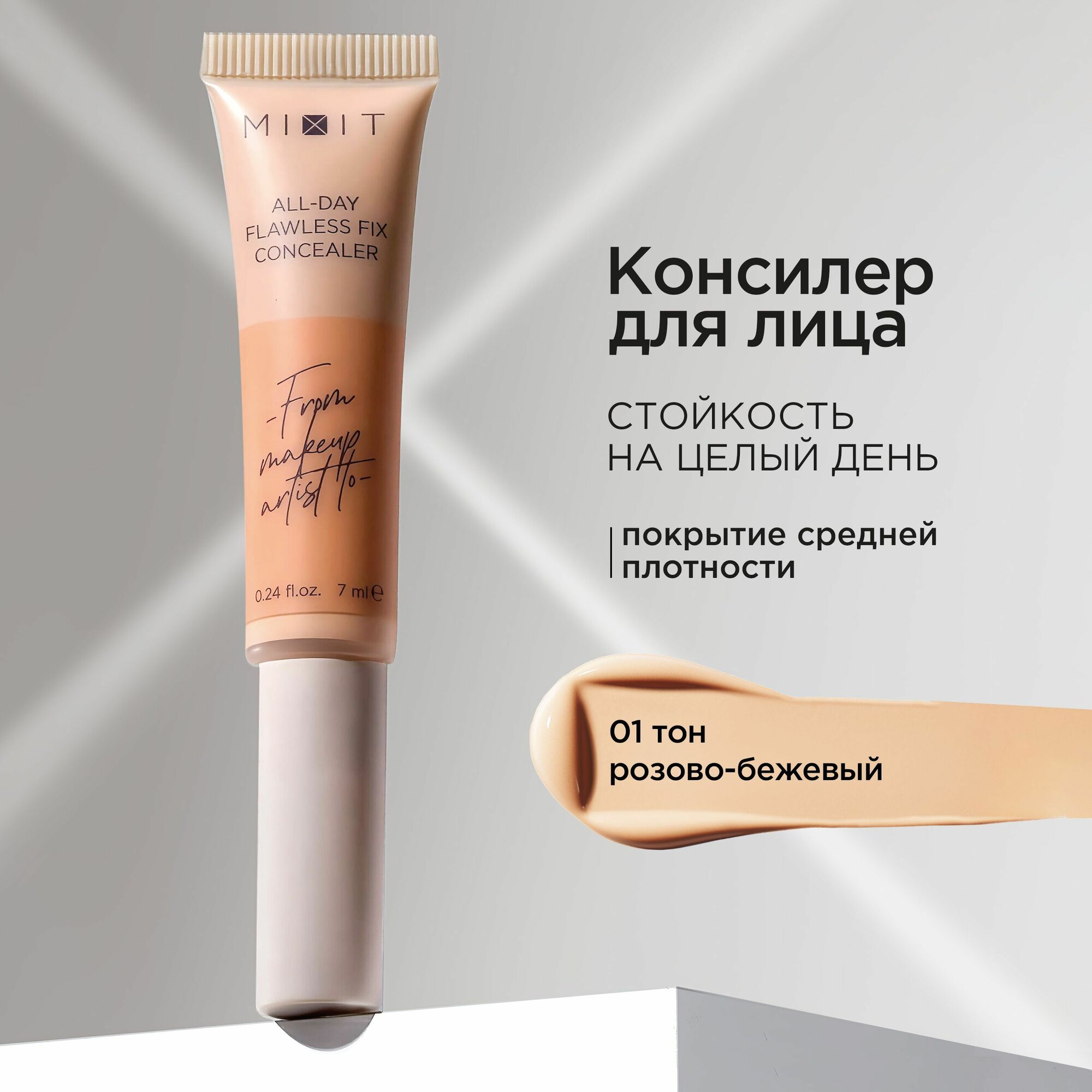 10 цен на MIXIT Консилер для лица стойкий матовый финиш 01 розово-бежевый. Профессиональная декоративная косметика макияжа MAKE UP