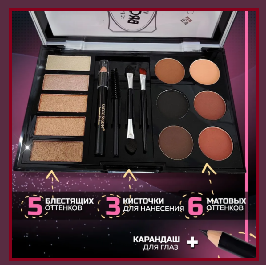 10 цен на Набор косметики для макияжа: тени для бровей, тени для век палетка, подводка для глаз, кисти для макияжа