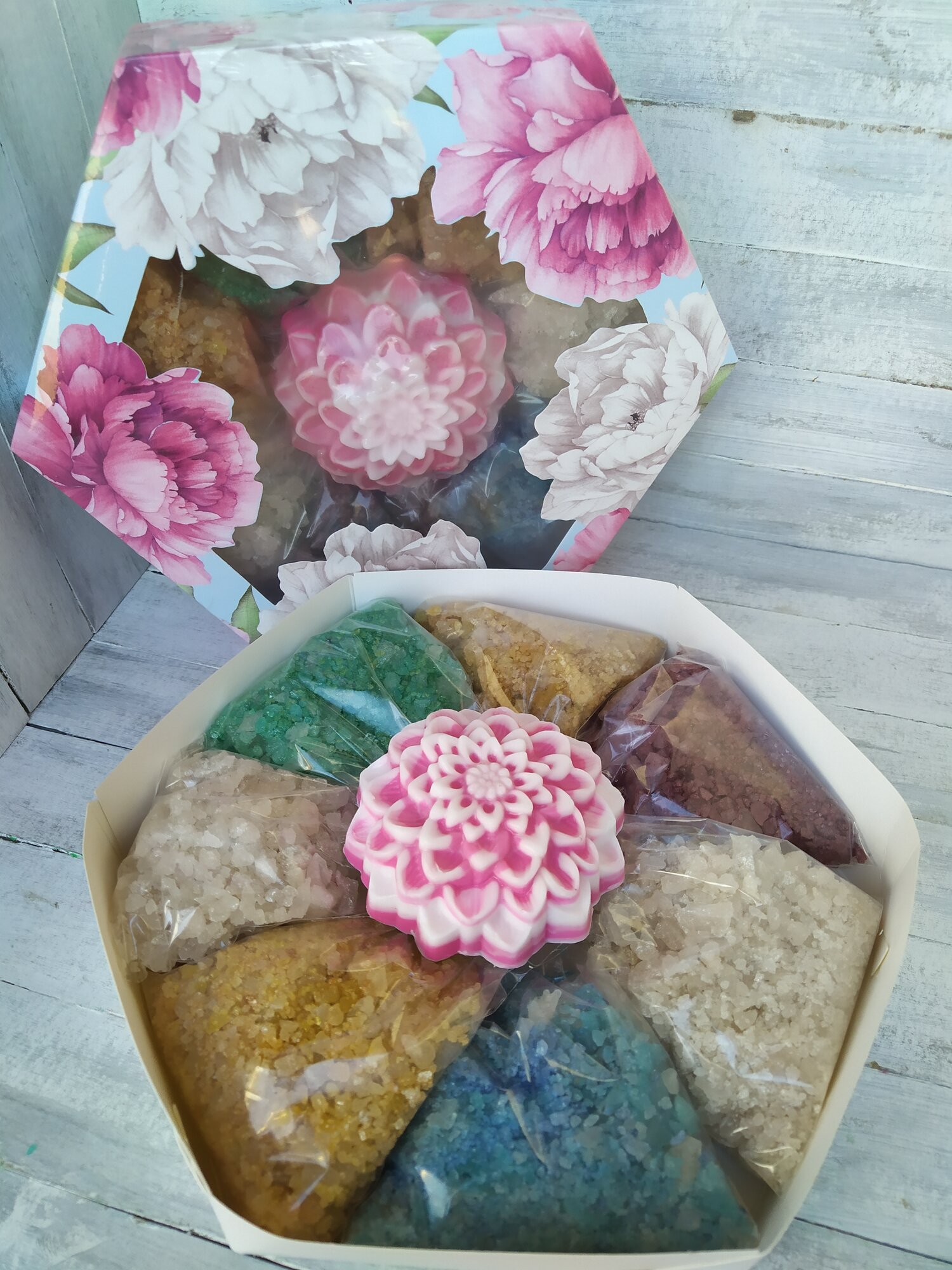 Отзывы на Подарочный набор для женщин" Цветик-семицветик" морская соль для ванны в ассортименте и мыло ручной работы, 990 г