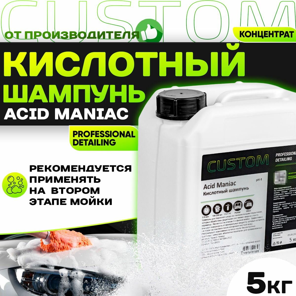 Кислотный автошампунь для керамики / жидкого стекла / CUSTOM Acid Maniac ручной шампунь, 5кг информация:
