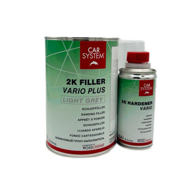 Грунт-наполнитель автомобильный CarSystem 2K FILLER VARIO PLUS (грунт 1.0л + отвердитель 0.2л), светло-серый информация:
