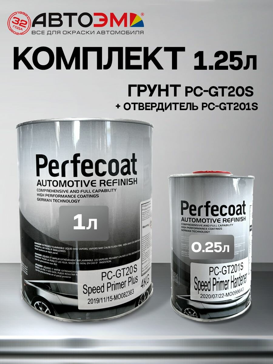 10 цен на Perfecoat Грунт автомобильный "мокрый по-мокрому" , быстросохнущий Sealer , грунт PC-GT20S 1 л + отвердитель PC-GT201S 0,25 л, цвет серый (комплект)