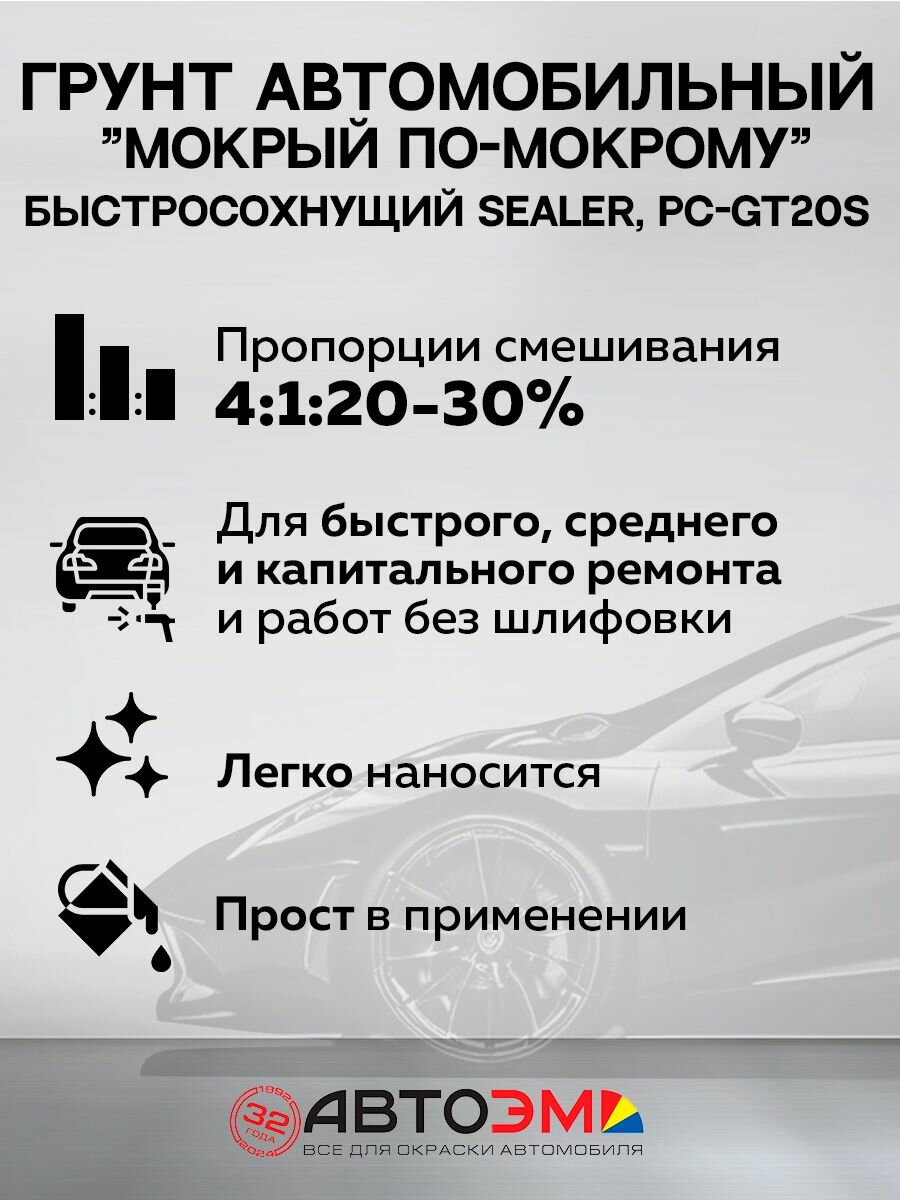 Perfecoat Грунт автомобильный "мокрый по-мокрому" , быстросохнущий Sealer , грунт PC-GT20S 1 л + отвердитель PC-GT201S 0,25 л, цвет серый (комплект) информация: