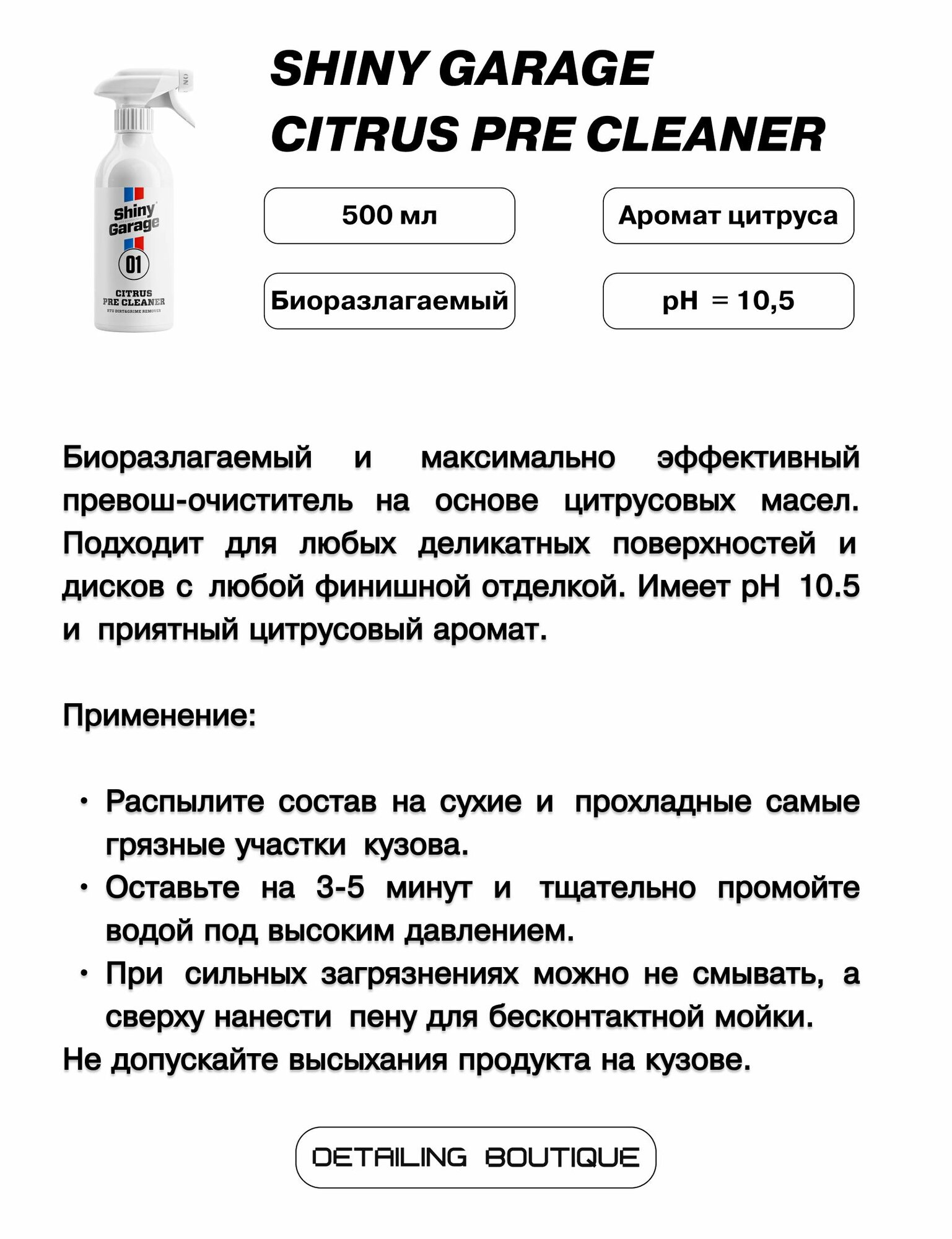 Биоразлагаемый цитрусовый очиститель-превош Shiny Garage Citrus Pre Cleaner 500мл/ для кузова авто информация: