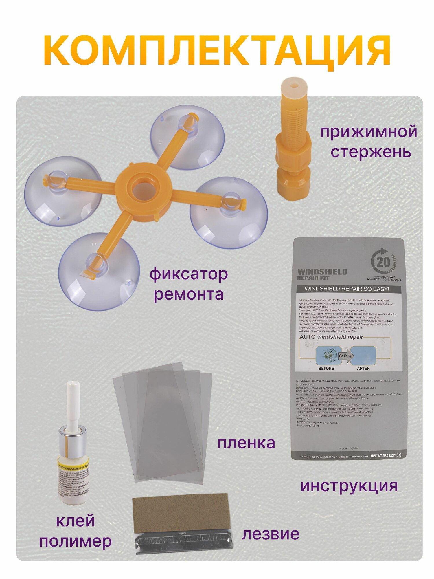 Комплект для ремонта лобового стекла / Ремкомплект для удаления сколов и трещин Windshield Repair Kit информация:
