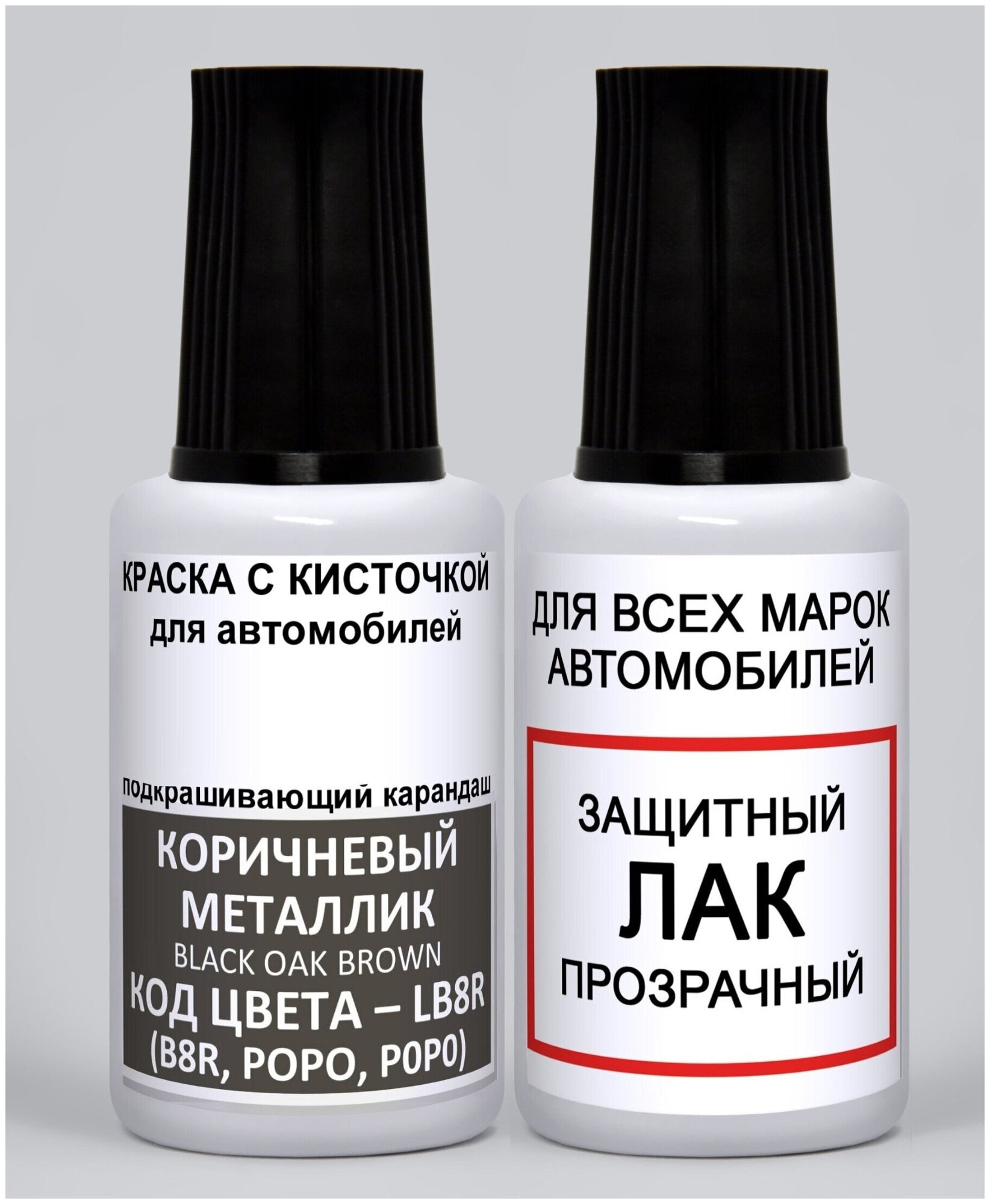 Краска для сколов во флаконе с кисточкой LB8R (B8R, POPO, P0P0) VAG Volkswagen Коричневый металлик, Black Oak Brown, краска+лак 2 предмета информация: