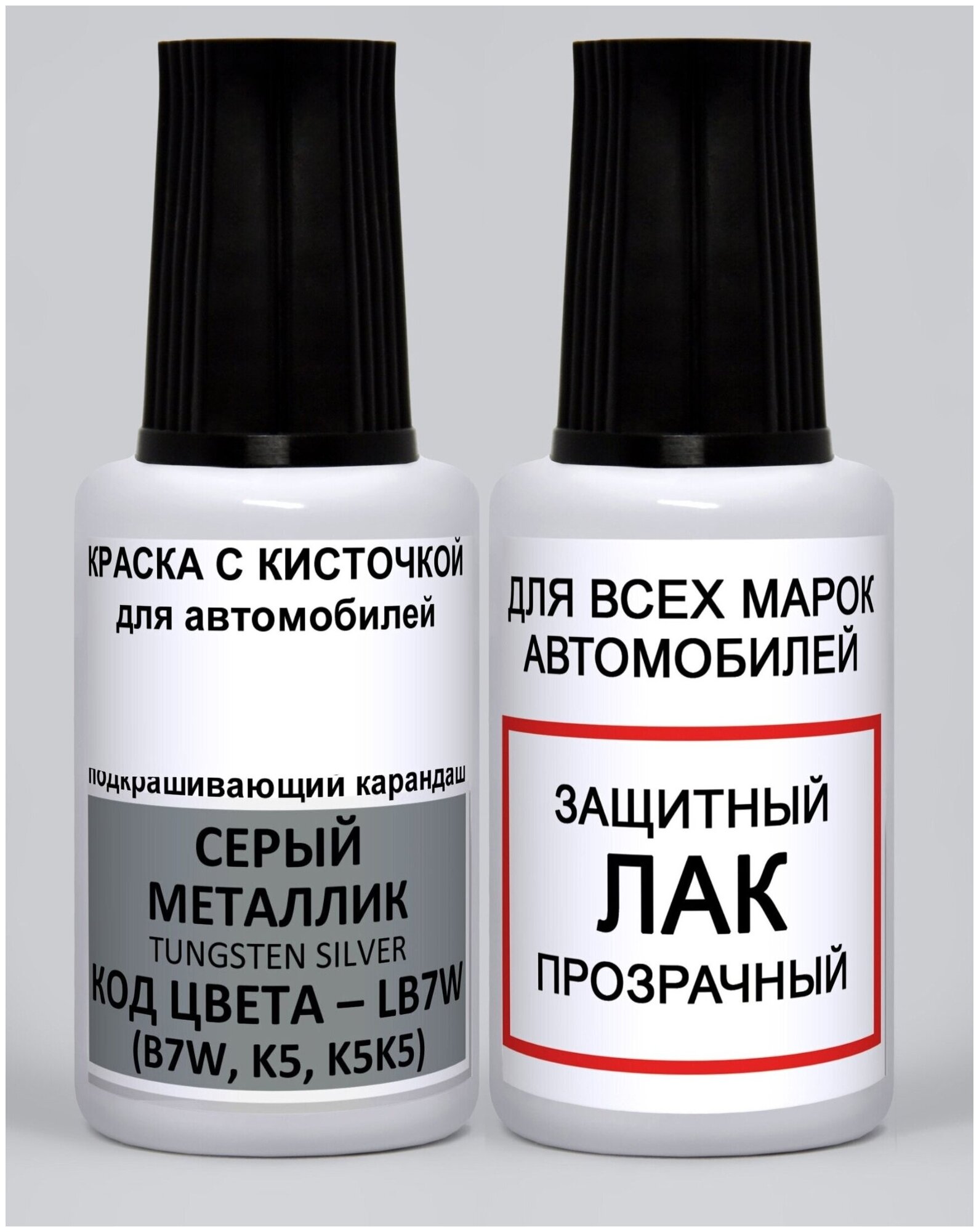 Краска для сколов во флаконе с кисточкой LB7W (B7W, K5, K5K5) VAG Volkswagen Серебристый металлик, Tungsten Silver, краска+лак 2 предмета информация: