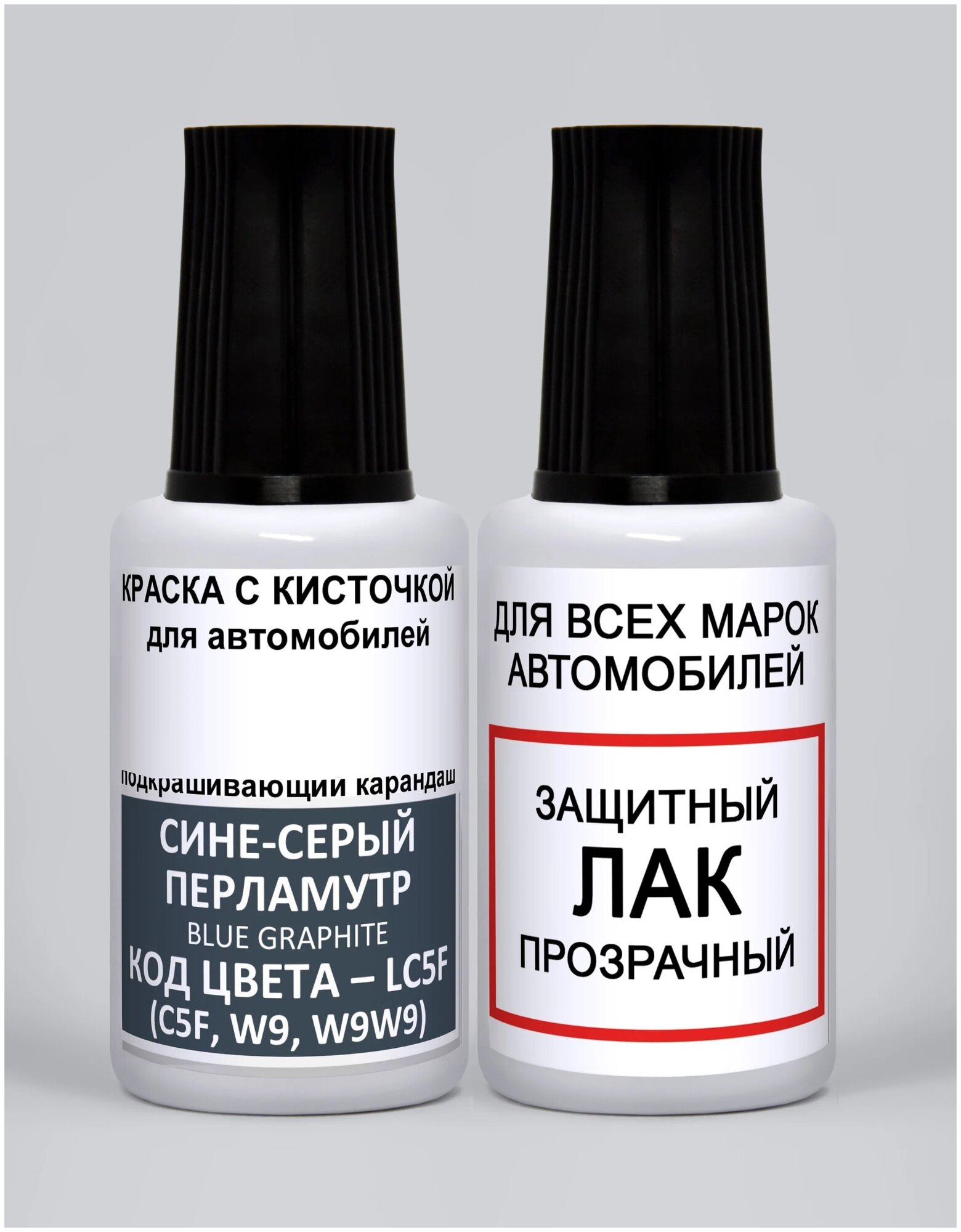 Краска для сколов во флаконе с кисточкой LC5F (C5F, W9, W9W9) VAG Volkswagen Синий перламутр, Blue Graphit, краска+лак 2 предмета информация:
