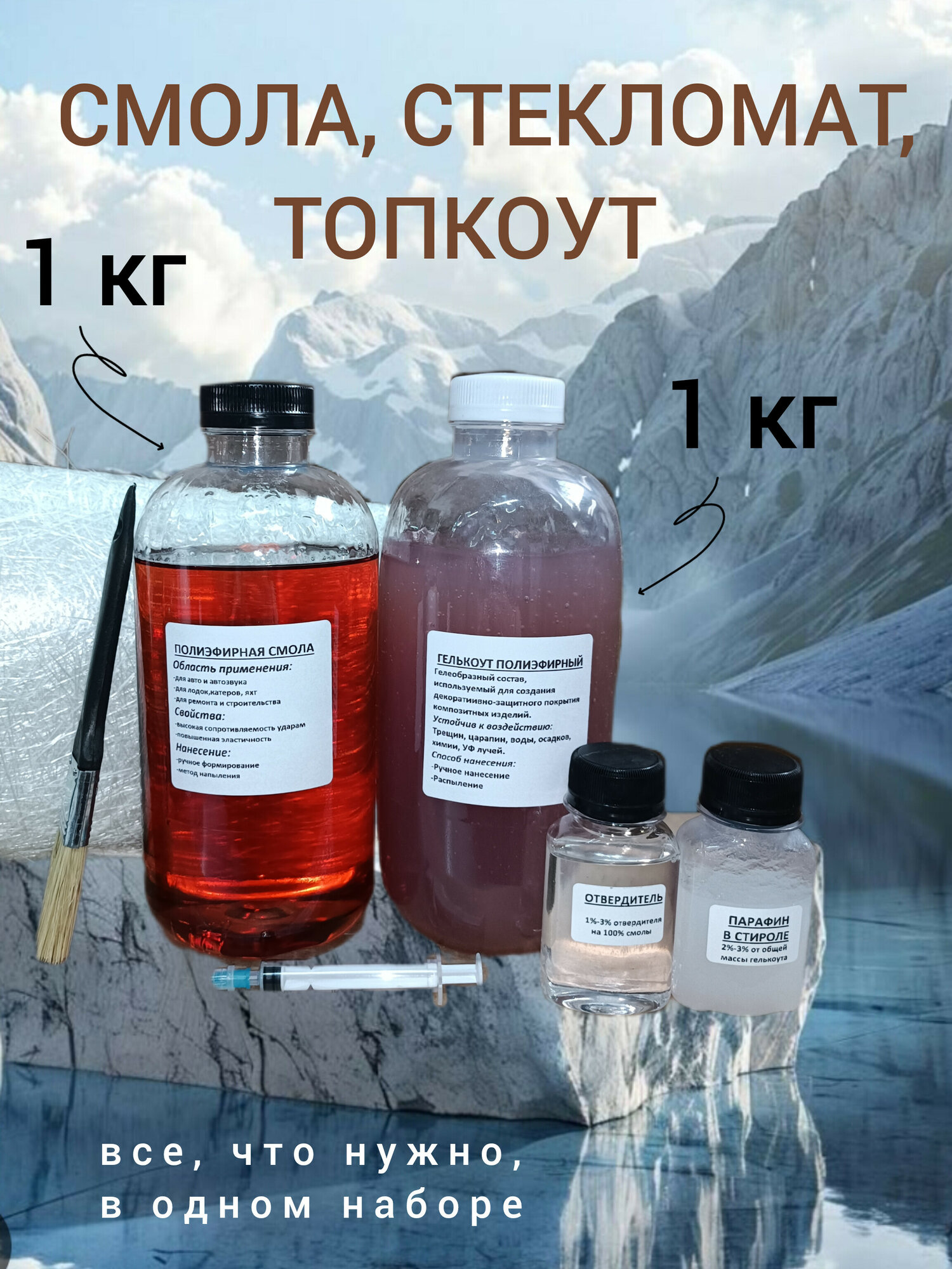 10 цен на Смола полиэфирная, стекломат, Топкоут бесцветный 1кг