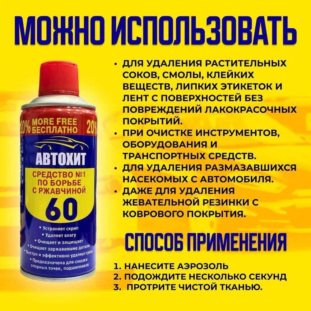Антикоррозийное средство WD-60 "Автохит", жидкое, универсальное информация: