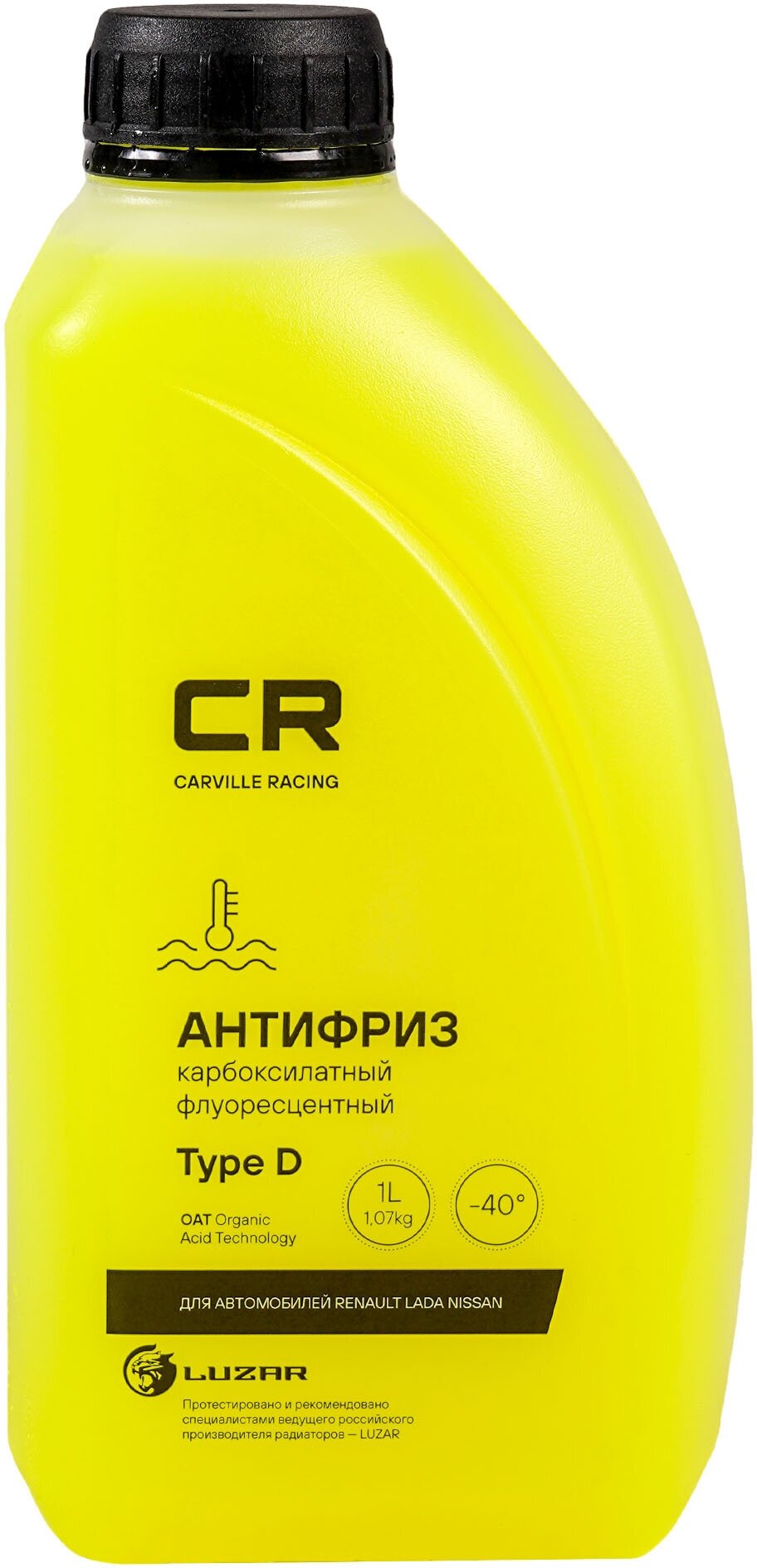 Антифриз CR для ам Renault (Лада, Nissan), Type D, флуор. -40°С, желтый, готовый, 1л1.07кг L2018535 Carville Racing L2018535 информация: