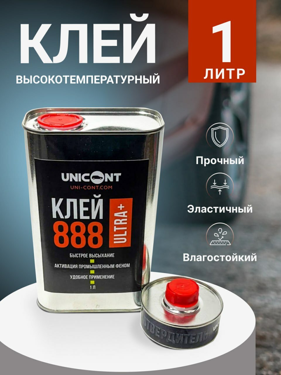Клей 888 Ультра 1 литр в комплекте с отвердителем 0.1 л автомобильный высокотемпературный для торпед термоактивируемый информация: