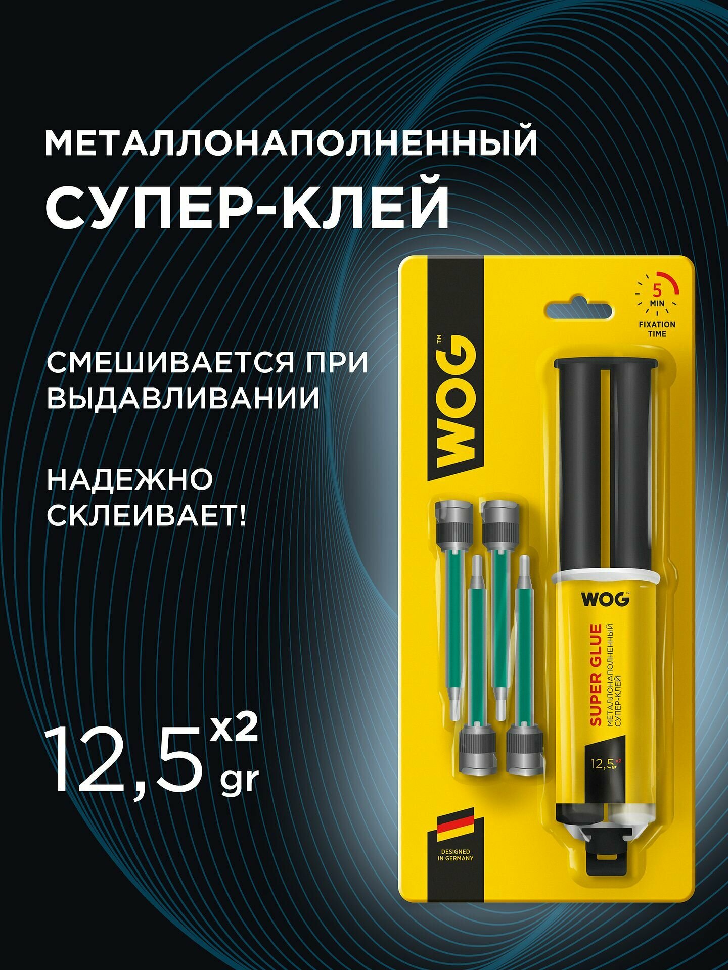 10 цен на Клей металлонаполненный двухкомпонентный в шприце WOG, 12,5/12,5 гр
