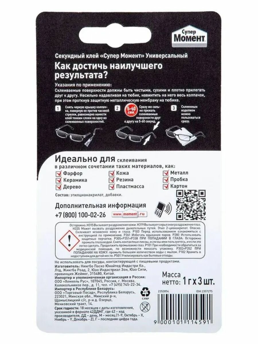 Супер клей секундный момент Мини-Трио 3 х 1 г информация: