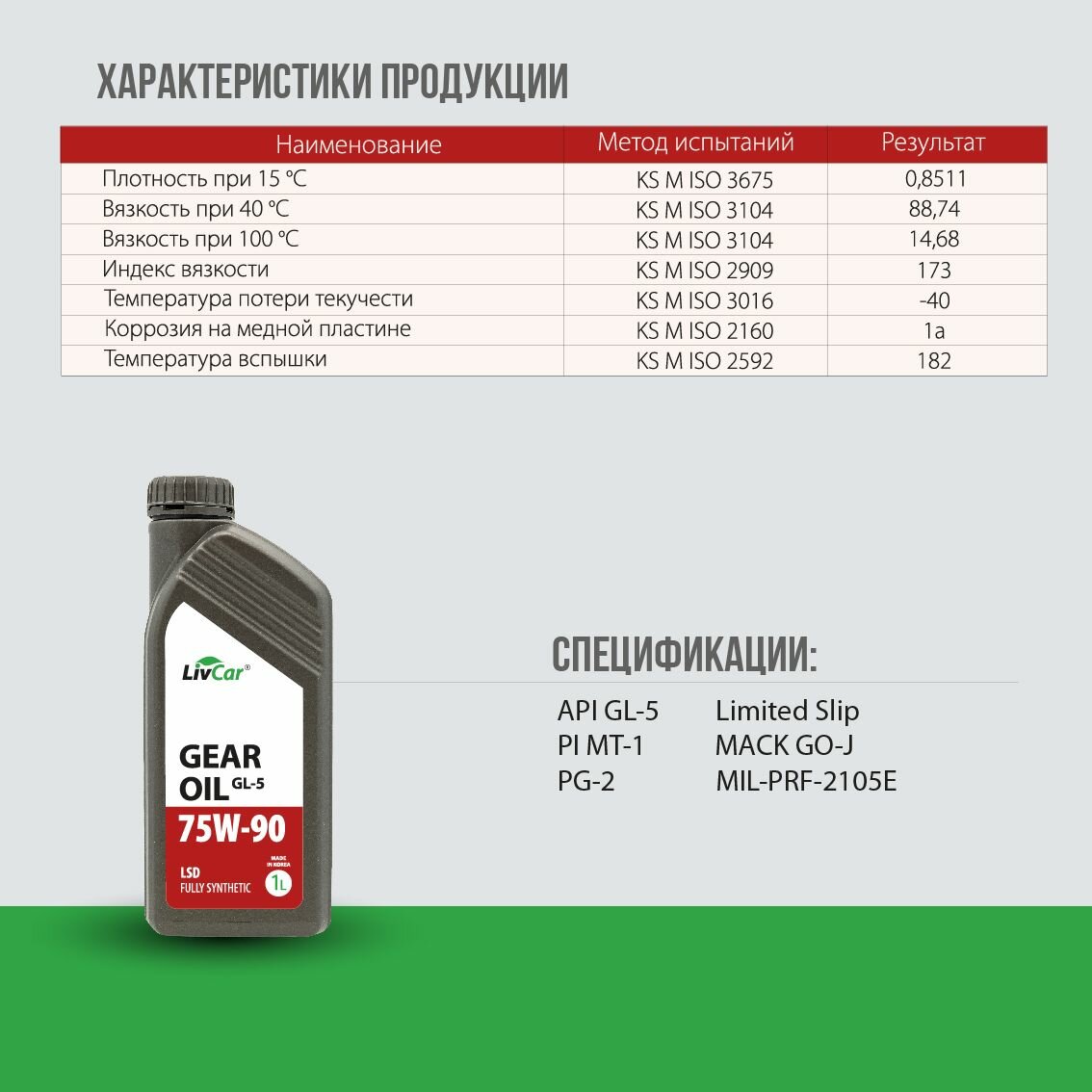 Масло трансмиссионное LivCar Gear Oil LSD GL-5 75W-90 (1л) информация: