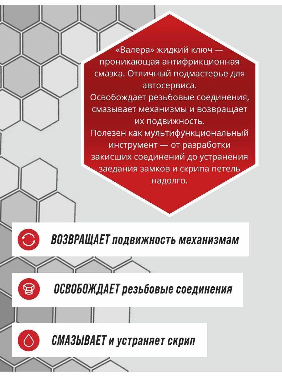 Жидкий ключ валера проникающая антифрикционная смазка, 400мл информация: