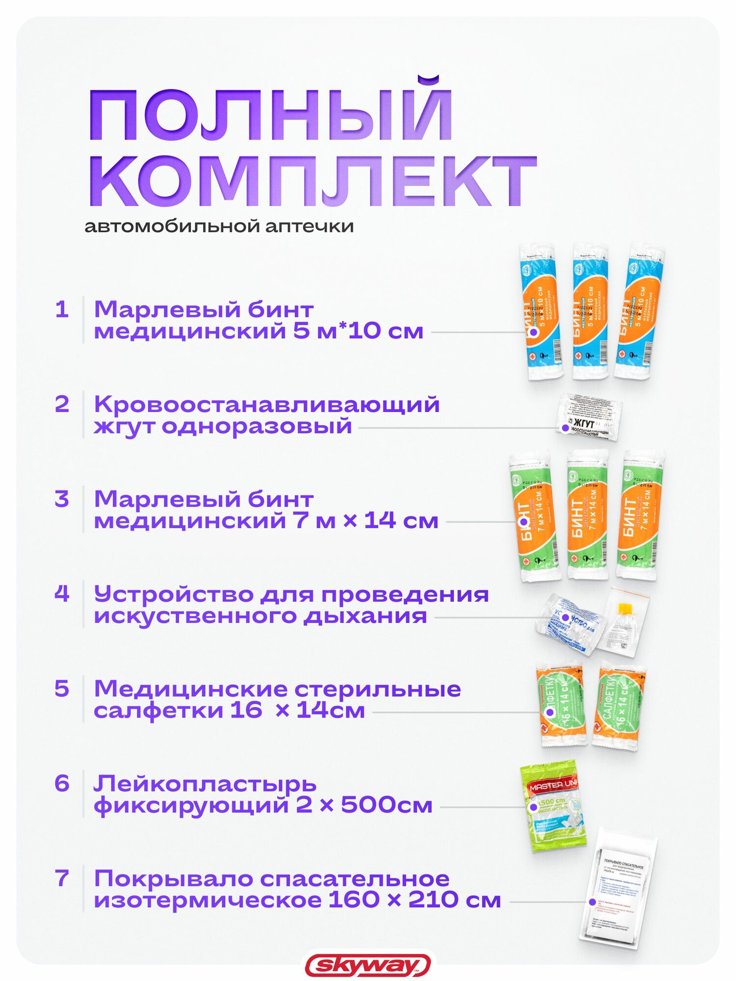 Аптечка автомобильная 2025 нового образца по ГОСТУ SKYWAY информация:
