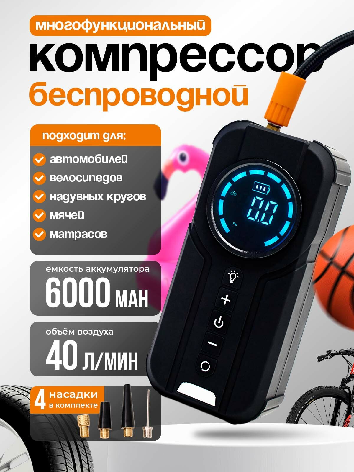 Отзывы на Компрессор автомобильный беспроводной, насос автомобильный со встроенным АКБ и зарядкой от USB (Черный)