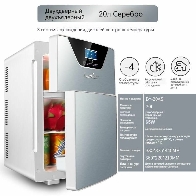 10 цен на Мини-холодильник "Хилап", двойной, серебристый, 20л, компрессорный