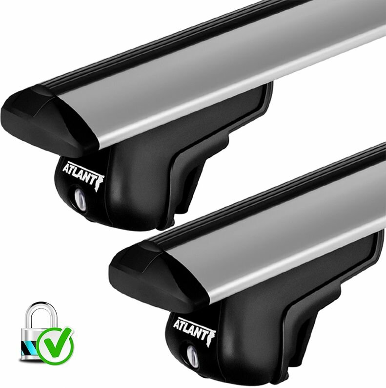 10 цен на Багажник Атлант для Peugeot Partner Air / Пежо Партнер Эйр Минивэн 2001-2007 на рейлинги - крыловидная дуга, серебристая, усиленная с замком
