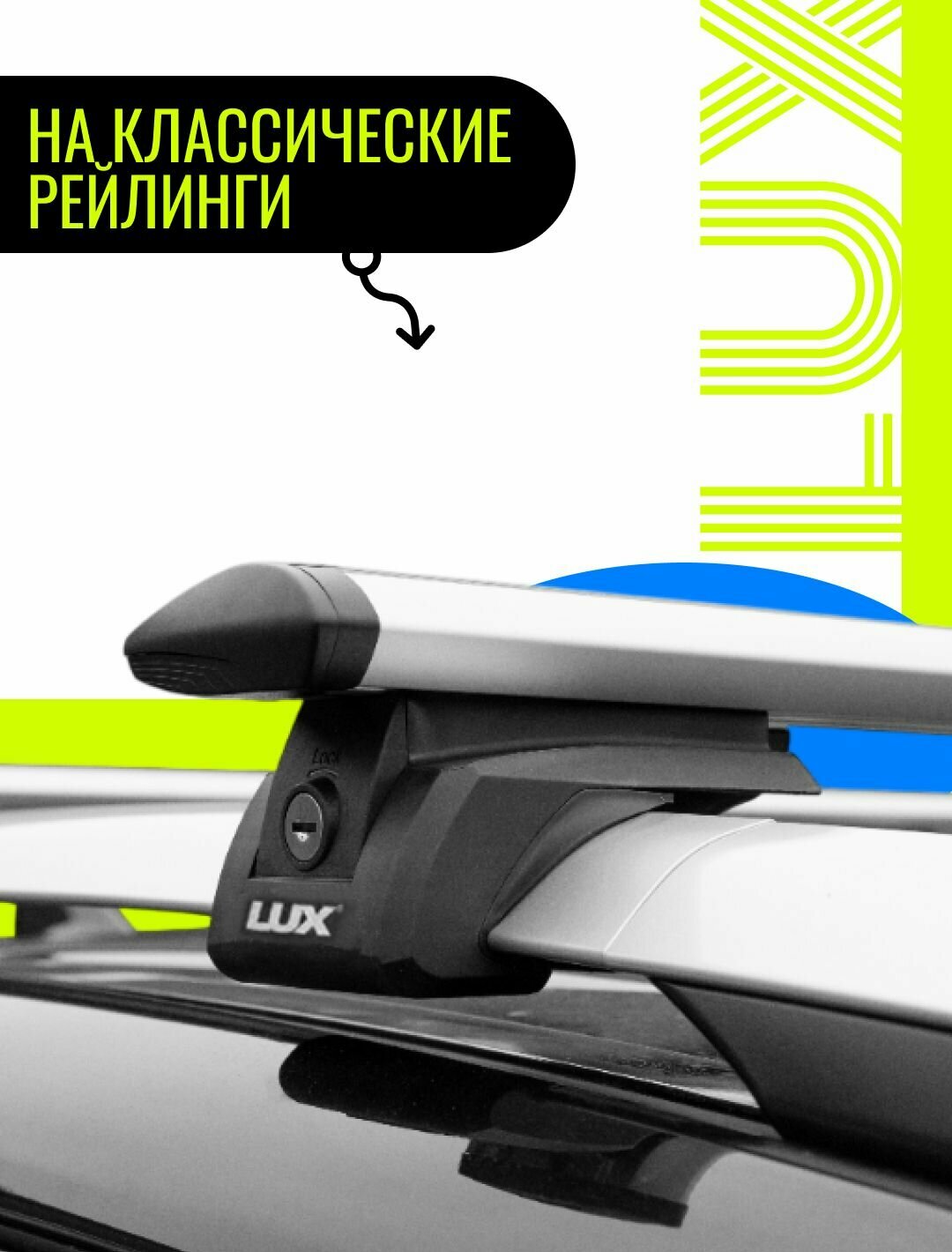 Багажник LUX элегант на крышу для Fiat Stilo / Фиат Стило универсал 2002-2010 на классические рейлинги - 120см крыловидные серебристые дуги + замок информация: