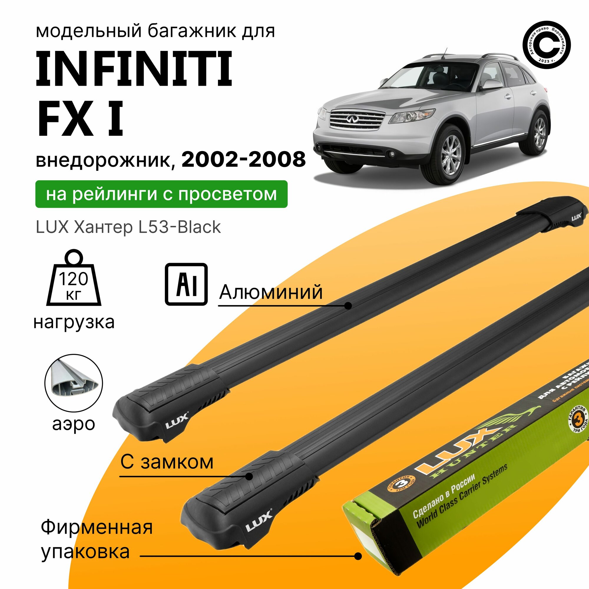 Багажник для Infiniti FX I (Инфинити ФХ) 2002-2008, LUX Хантер Black, на рейлинги с просветом, (поперечины и упоры) информация: