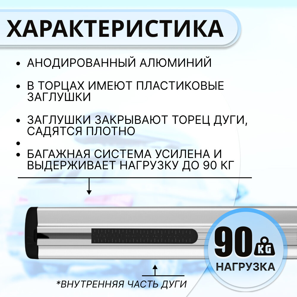 Багажник ATLANT на гладкую крышу HONDA Accord 4-дв седан 2008-2013, дуги алюминиевые Крыло 90 кг. усиленные 126 см информация: