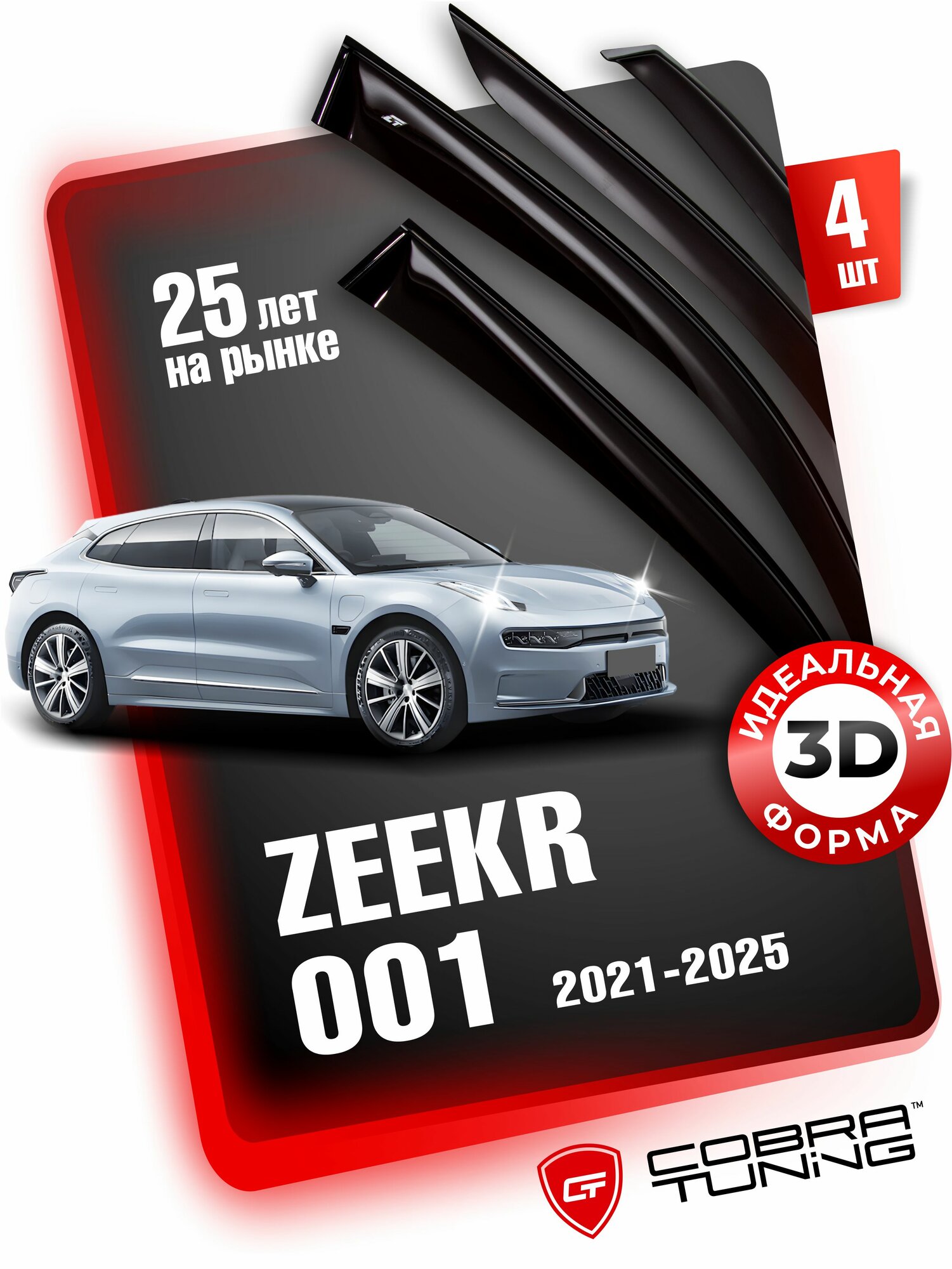 Дефлекторы боковых окон для Zeekr 001 (Зикр) 2021-2025 (4 части), ветровики на двери автомобиля, Cobra Tuning. информация: