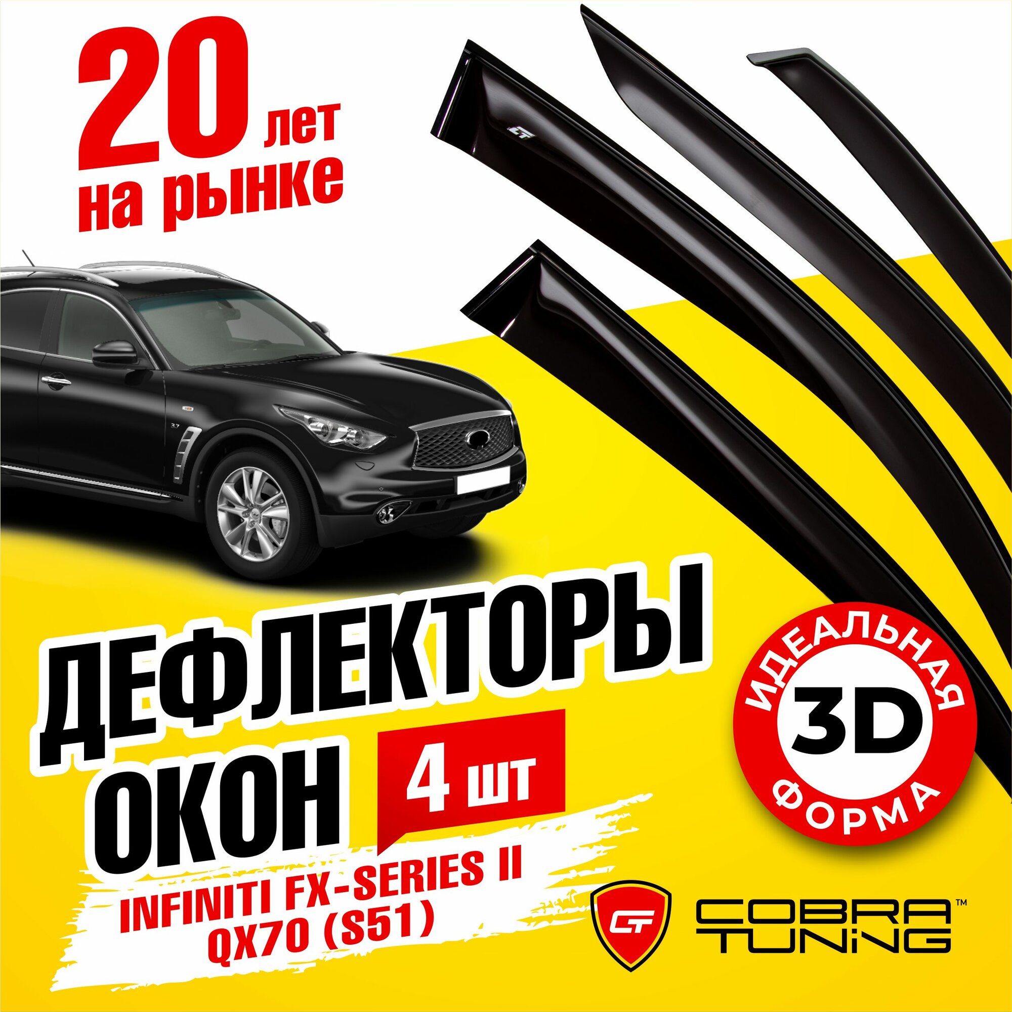 Дефлекторы боковых окон для Infiniti (Инфинити) FX-Series 2 (S51) 2008-2013, Infiniti (Инфинити) QX70 (S51) 2013-2017, ветровики на двери автомобиля, Cobra Tuning информация: