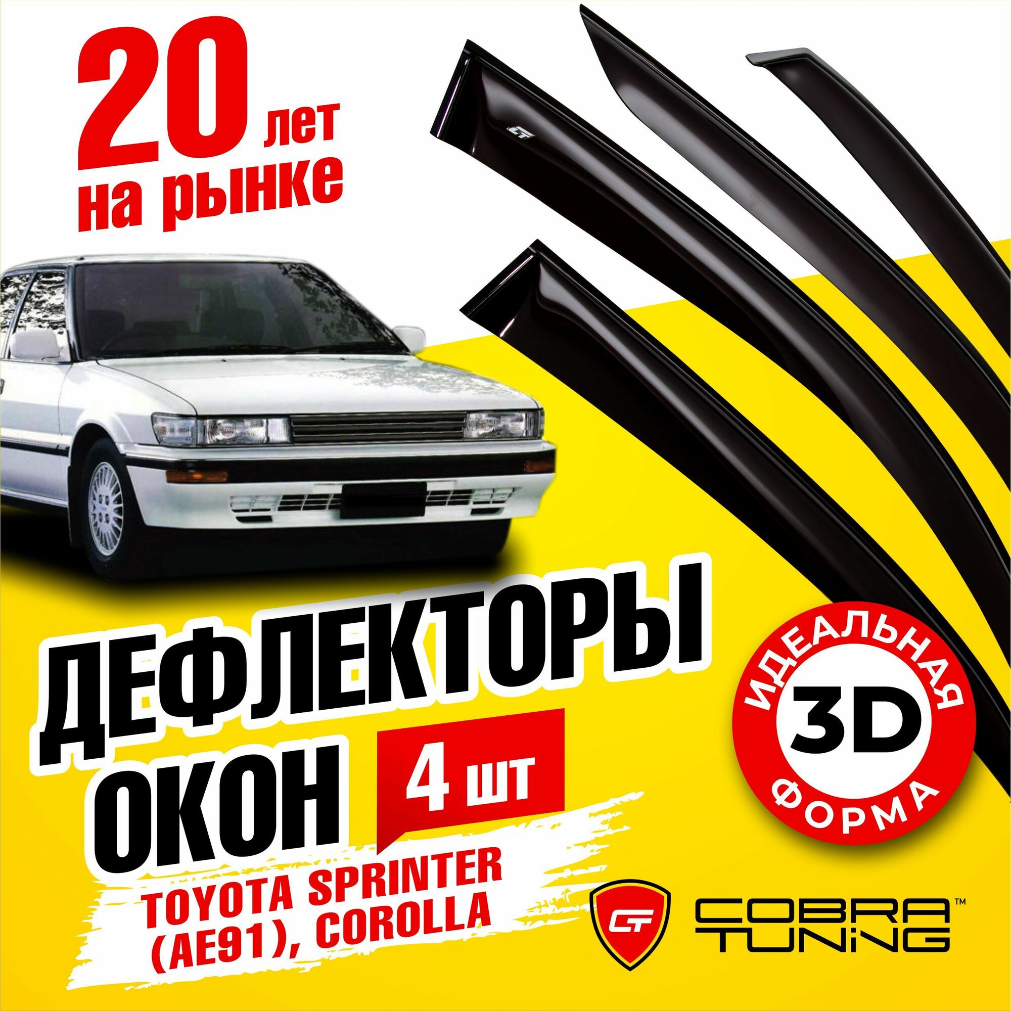 Дефлекторы боковых окон для Toyota Sprinter (Тойота Спринтер) (AE91) седан, Corolla (Королла) седан 1987-1991, ветровики на двери автомобиля, Cobra Tuning информация: