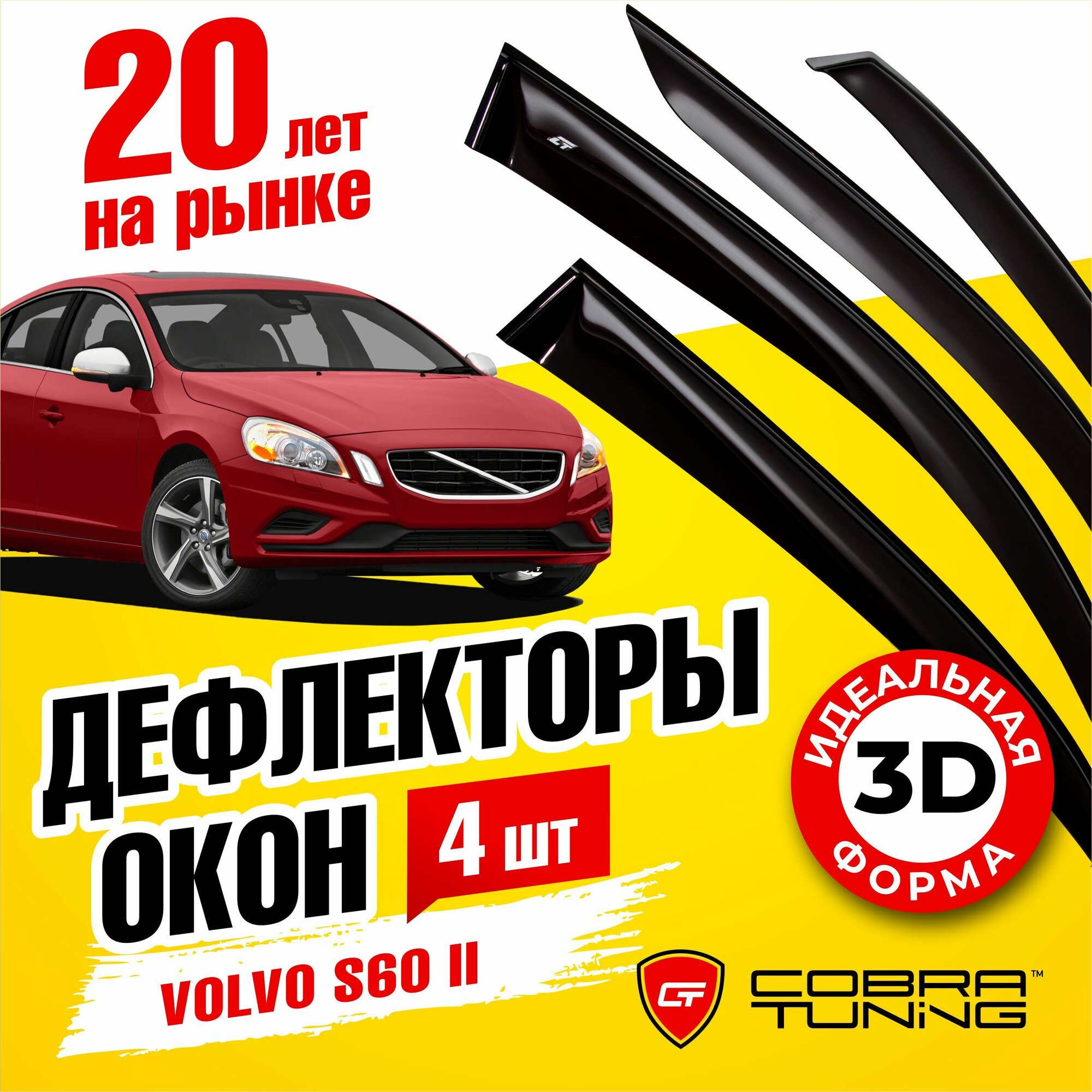 10 цен на Дефлекторы боковых окон для Volvo S60 2 (Вольво) 2010-2018, ветровики на двери автомобиля, Cobra Tuning