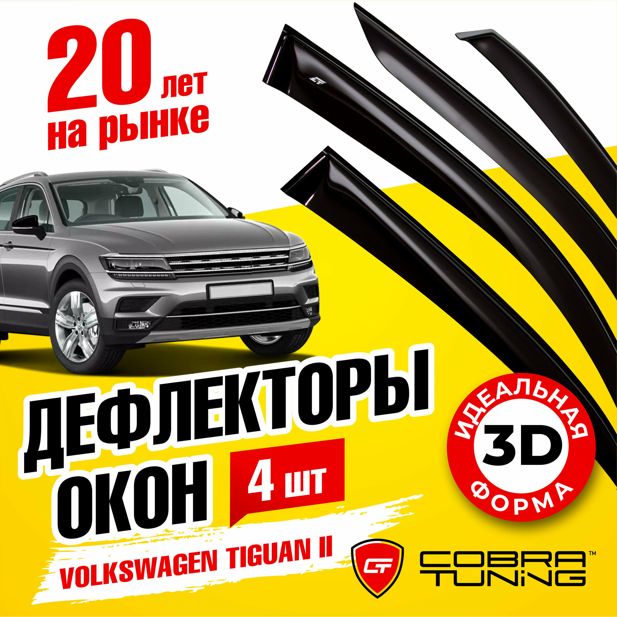 Отзывы на Дефлекторы боковых окон для Volkswagen Tiguan II (Фольксваген Тигуан 2) 2016-2022, ветровики на двери автомобиля, Cobra Tuning