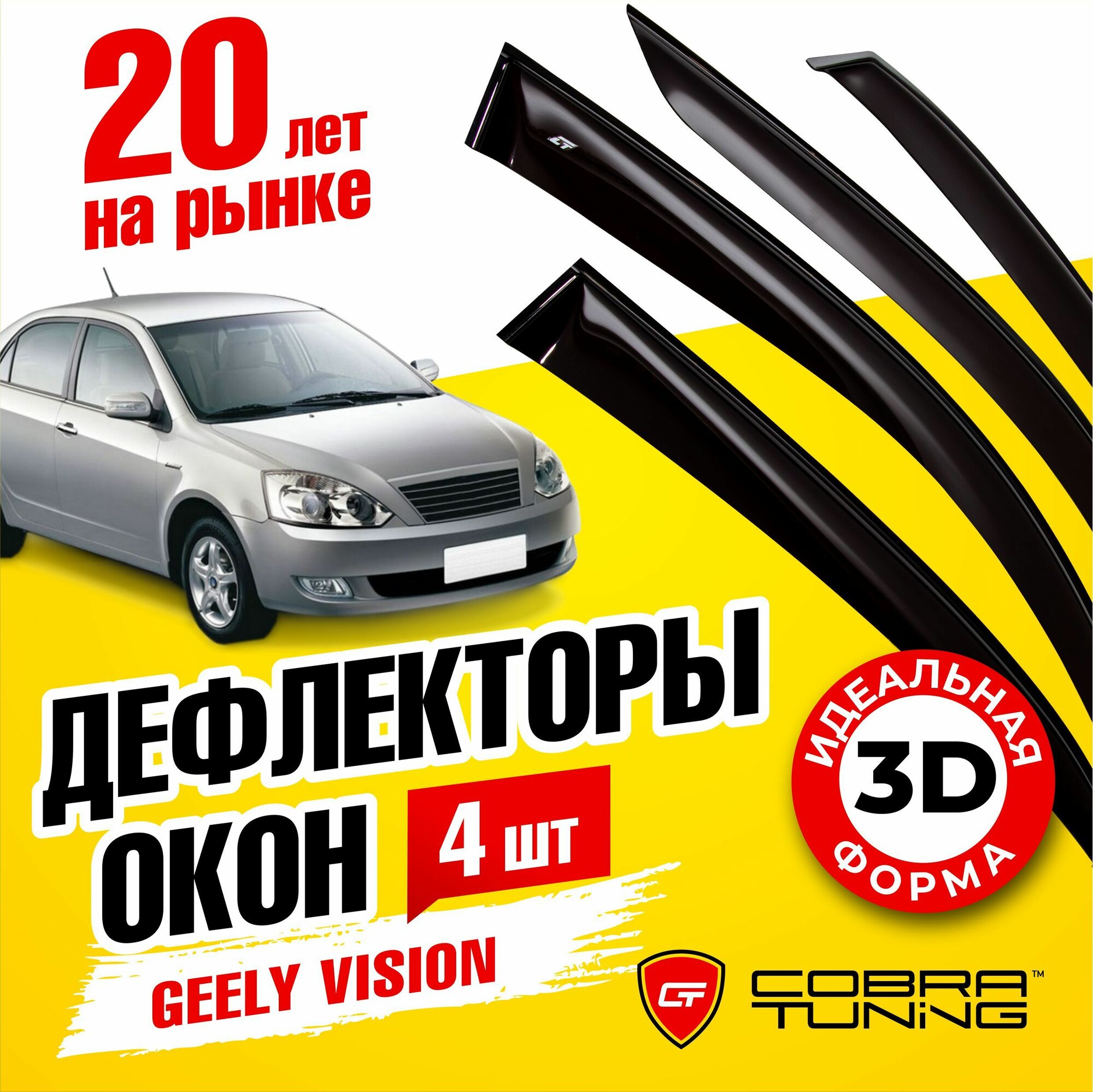 10 цен на Дефлекторы боковых окон для Geely Vision (Джили Визион) 2008-2011, ветровики на двери автомобиля, Cobra Tuning