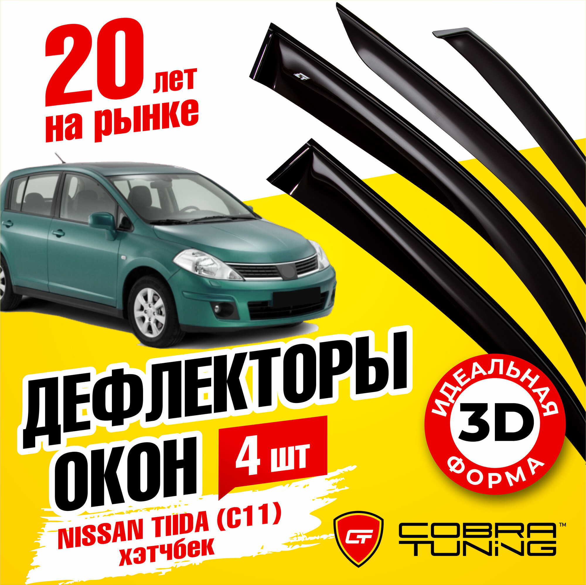 10 цен на Дефлекторы боковых окон для Nissan Tiida (Ниссан Тиида) хэтчбек (C11) 2004-2013, ветровики на двери автомобиля, Cobra Tuning