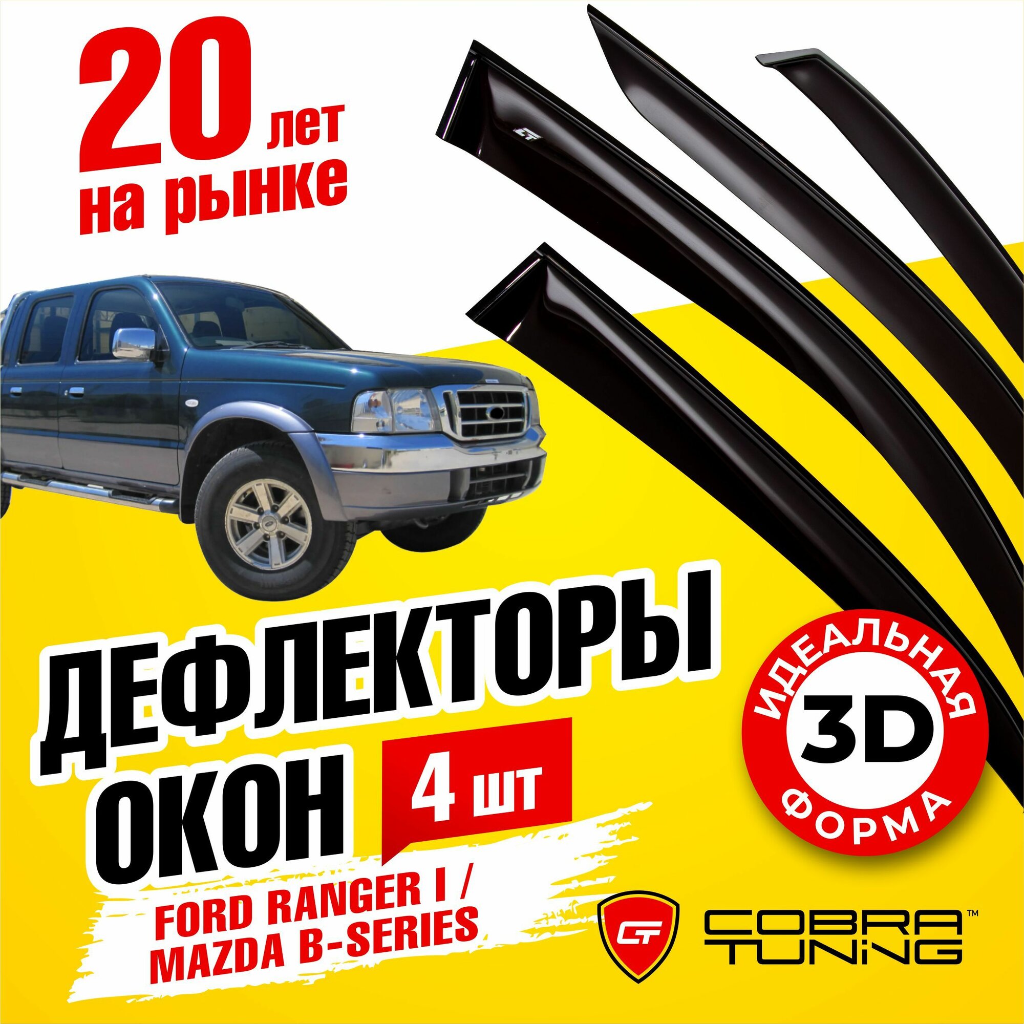 Дефлекторы боковых окон для Ford Ranger I (Форд Рейнджер 1) 1998-2007, Mazda (Мазда) B-Series 1998-2007, ветровики на двери автомобиля, Cobra Tuning информация: