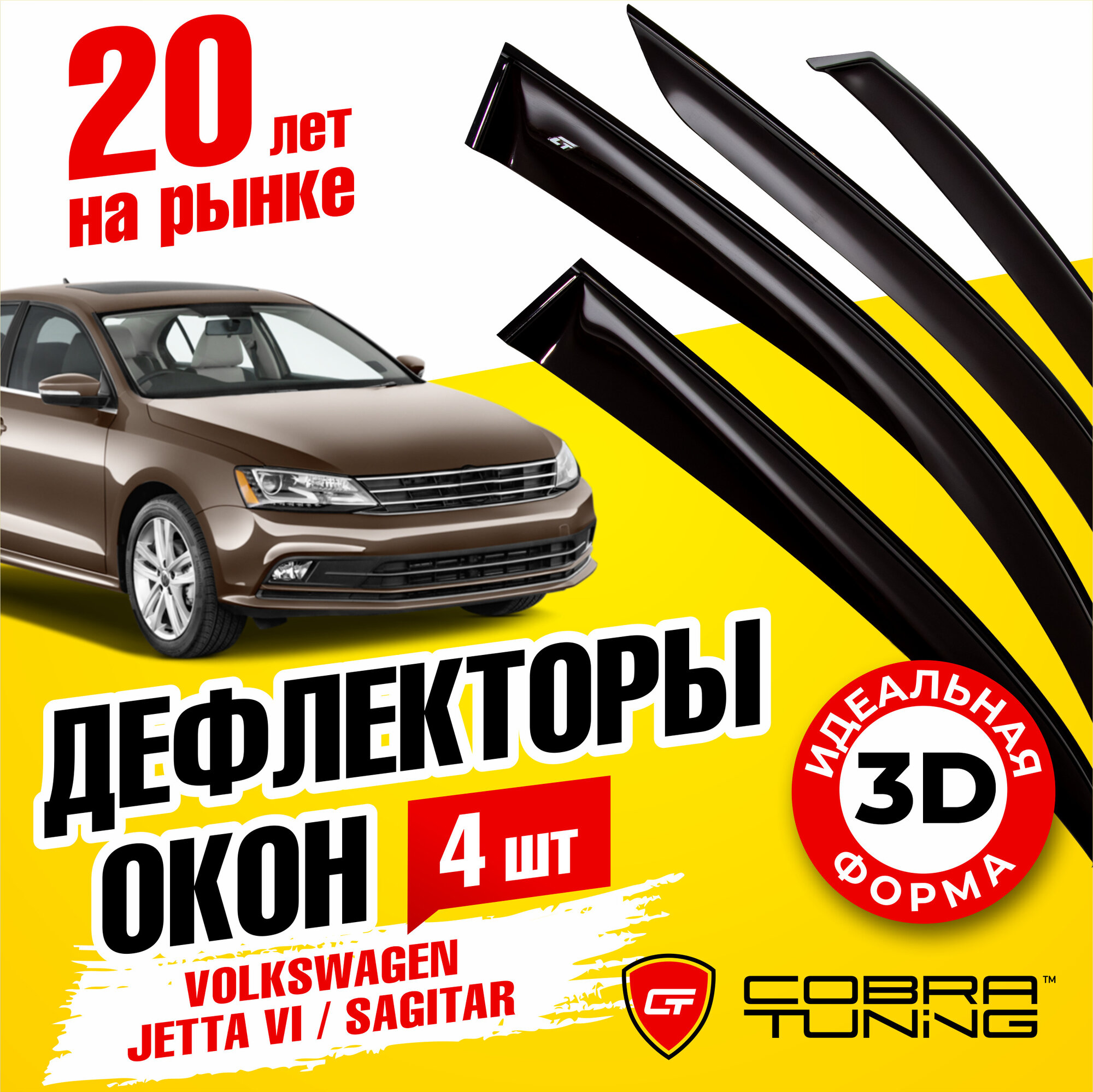 10 цен на Дефлекторы боковых окон для Volkswagen Jetta 6 (Фольксваген Джетта) седан 2010-2020, Sagitar (Сагитар) 2012-2019, ветровики на двери автомобиля, Cobra Tuning