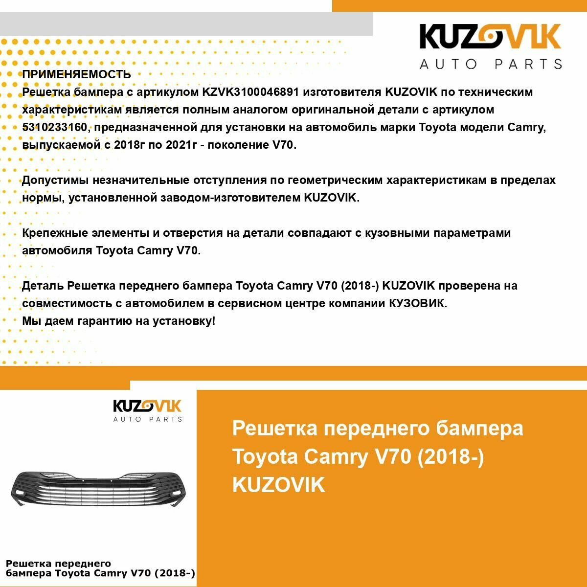 Отзывы на Решетка переднего бампера для Тойота Камри Toyota Camry V70 (2018-) черная