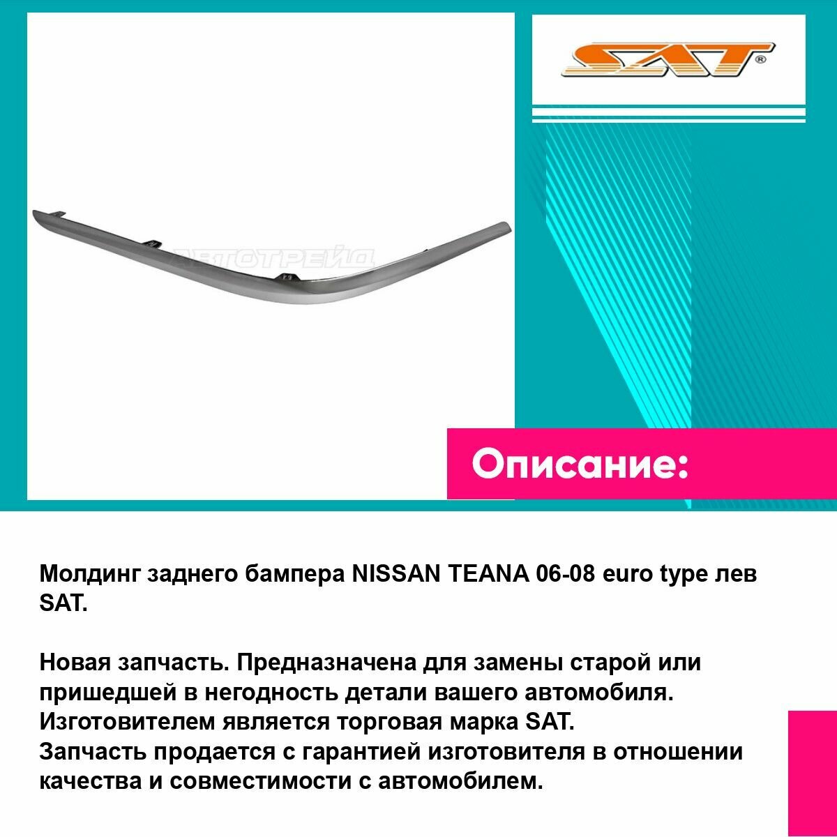 Отзывы на Молдинг заднего бампера левый Ниссан Теана NISSAN TEANA (2006-2008) накладка, новый качественный пластик SAT