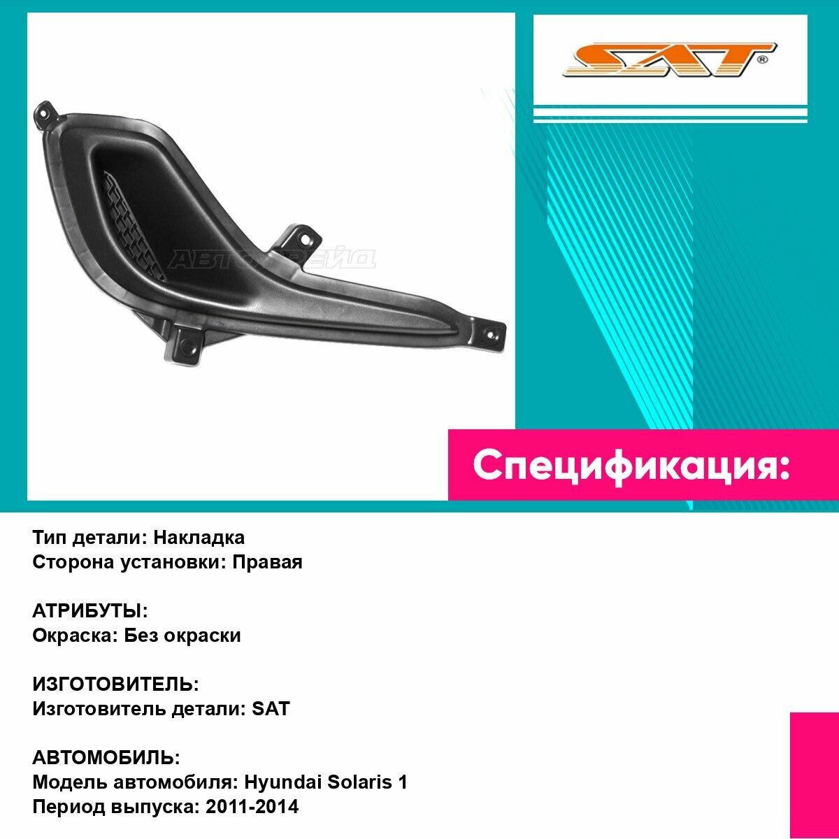 Заглушка в бампер HYUNDAI SOLARIS/ACCENT/VERNA 10-14 прав вместо ПТФ SAT хендай солярис информация: