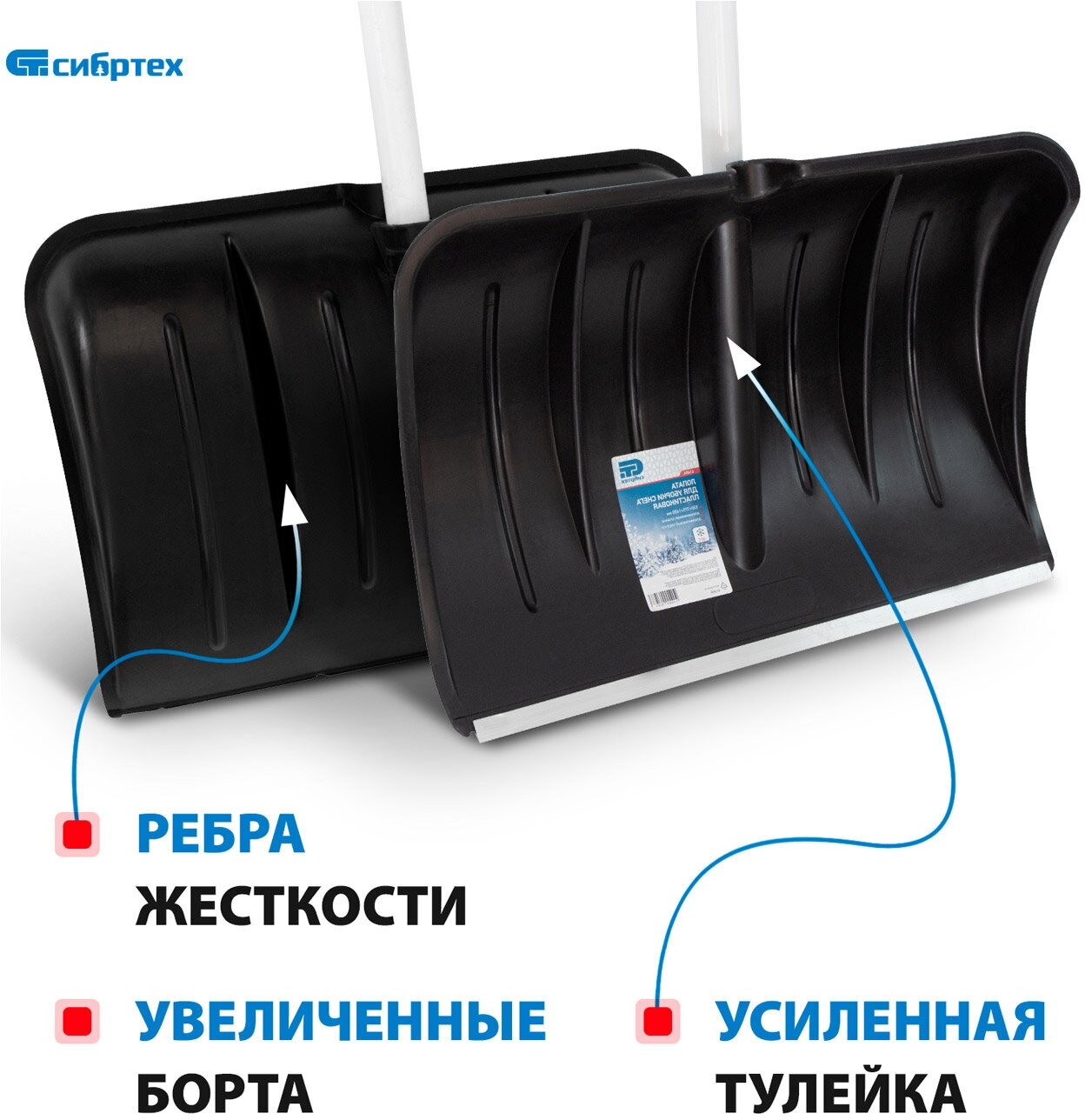 Лопата для уборки снега СИБРТЕХ пластиковая алюминиевый черенок 530х375х1400 мм