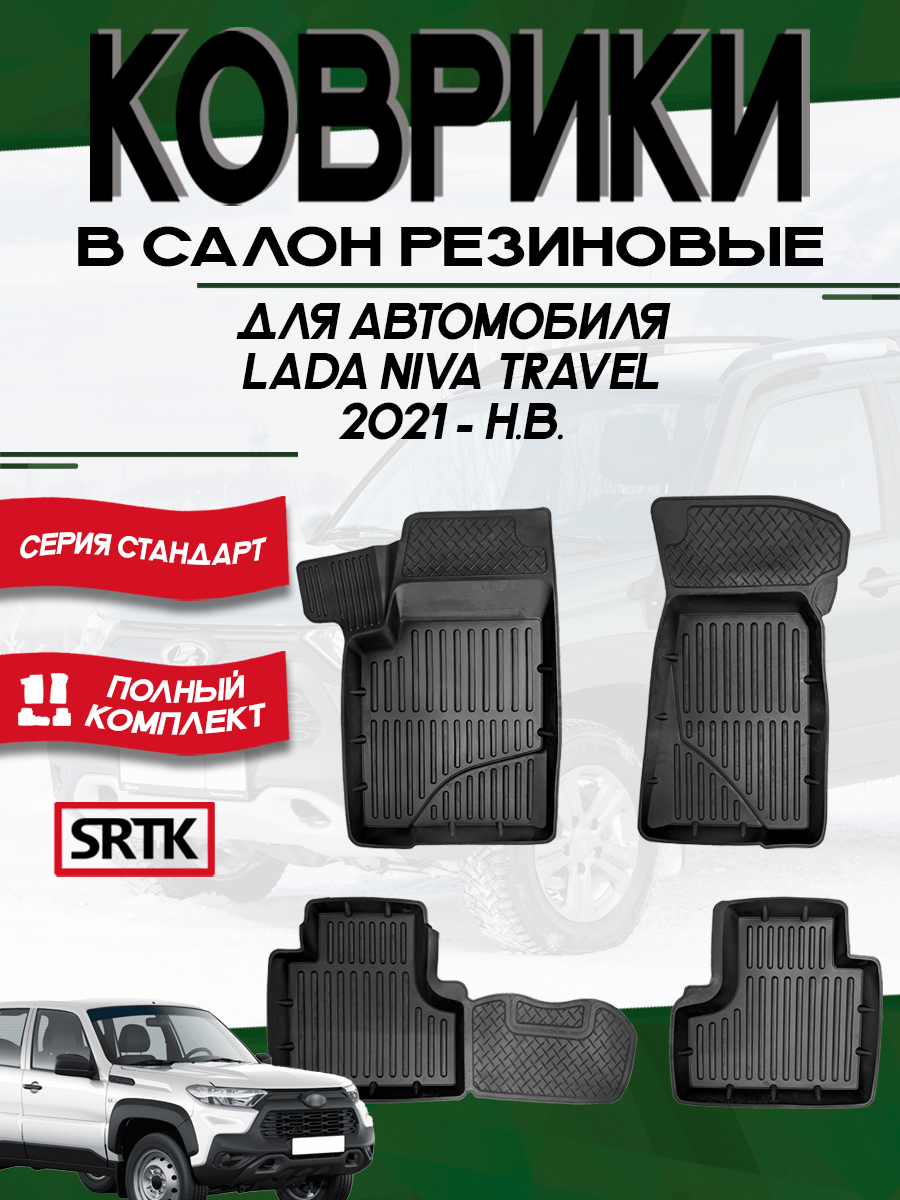 10 цен на Коврики резиновые для автомобиля Лада Нива Тревел (2021-)/Lada Niva Travel (2021-) SRTK 3D Standart комплект в cалон