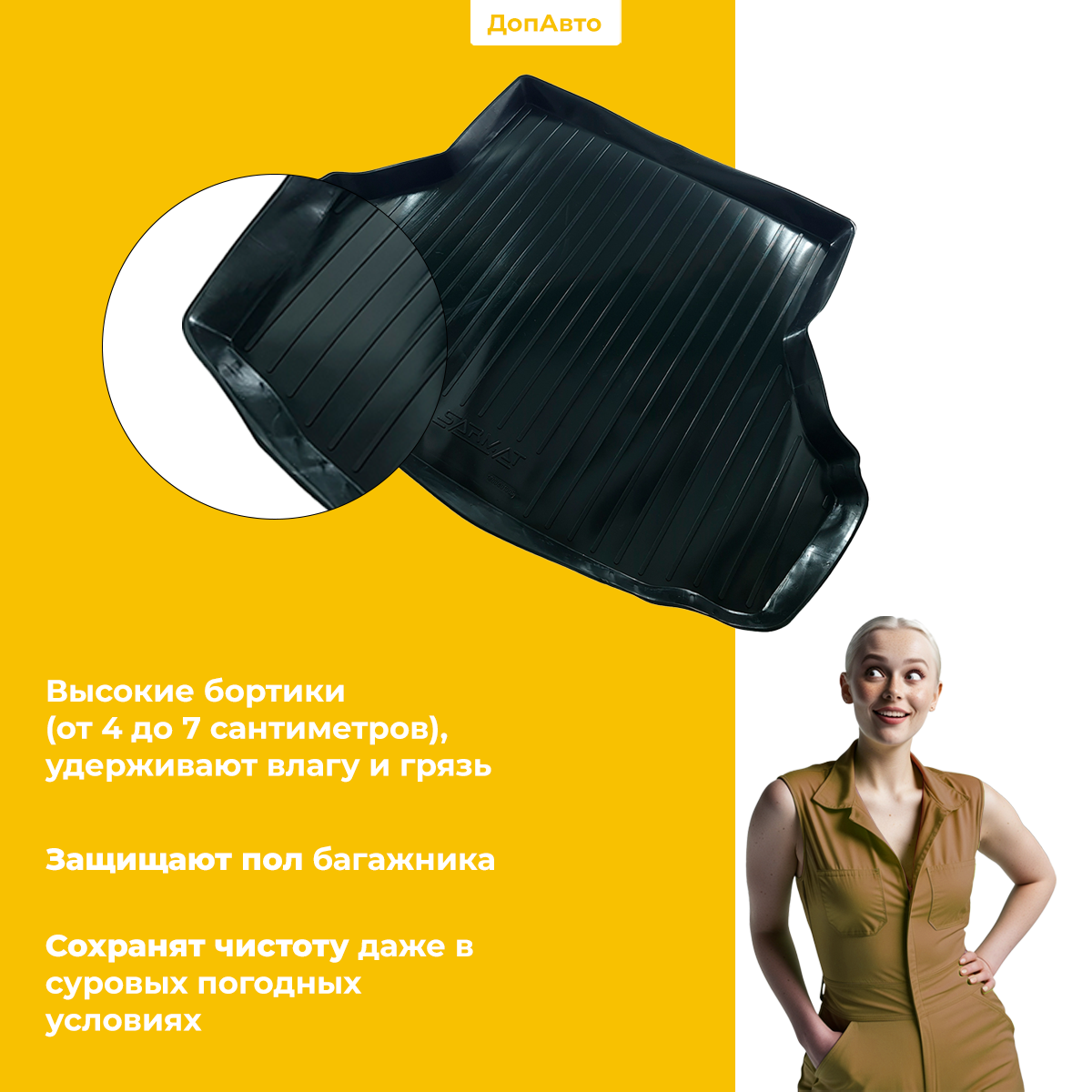 Отзывы на Коврик в багажник для автомобиля Лада Гранта (2011-)/Lada Granta (2011-) SRTK (Саранск) пластик (полиэтилен )